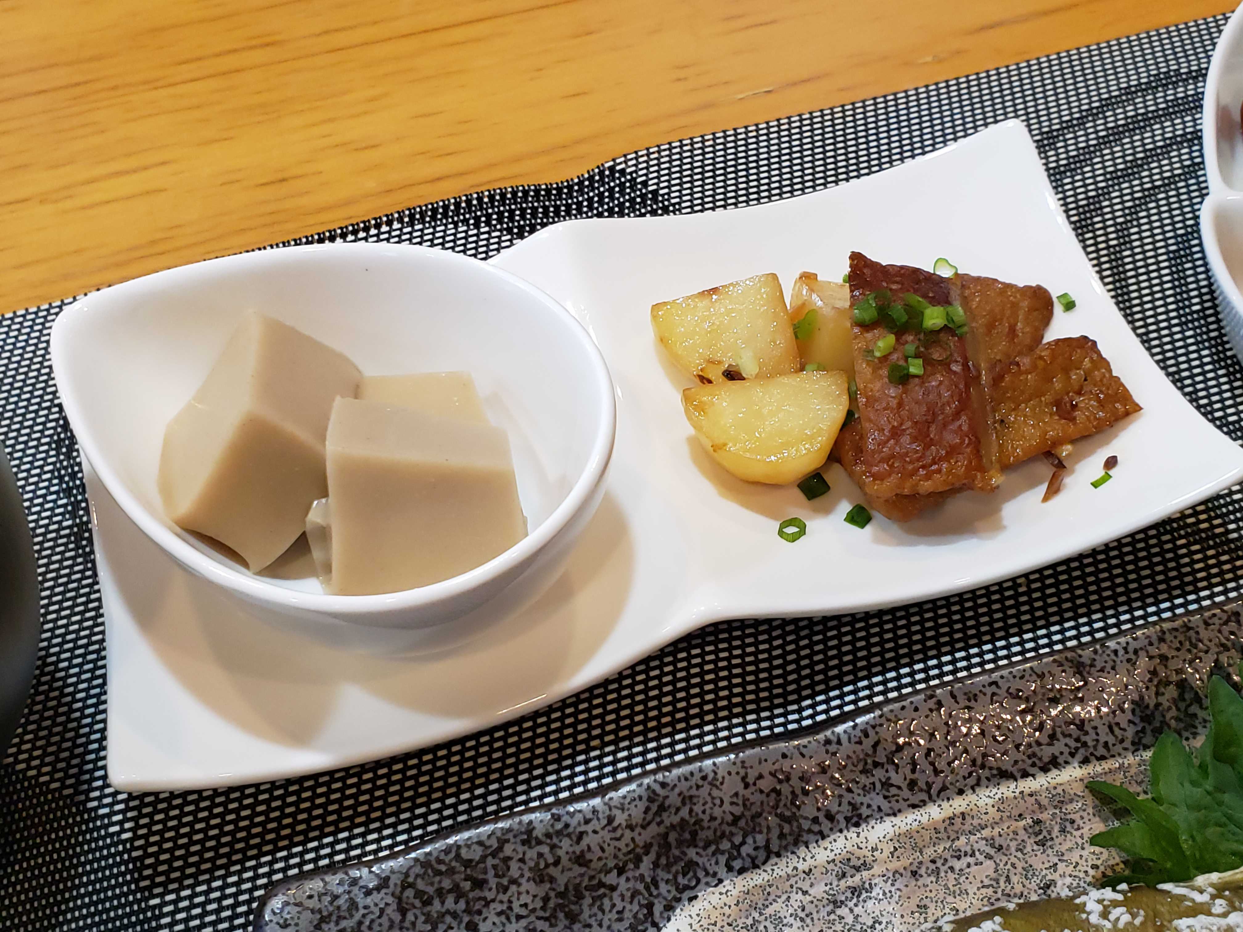 ごま豆腐 ジャガイモとじゃこ天の醤油炒め