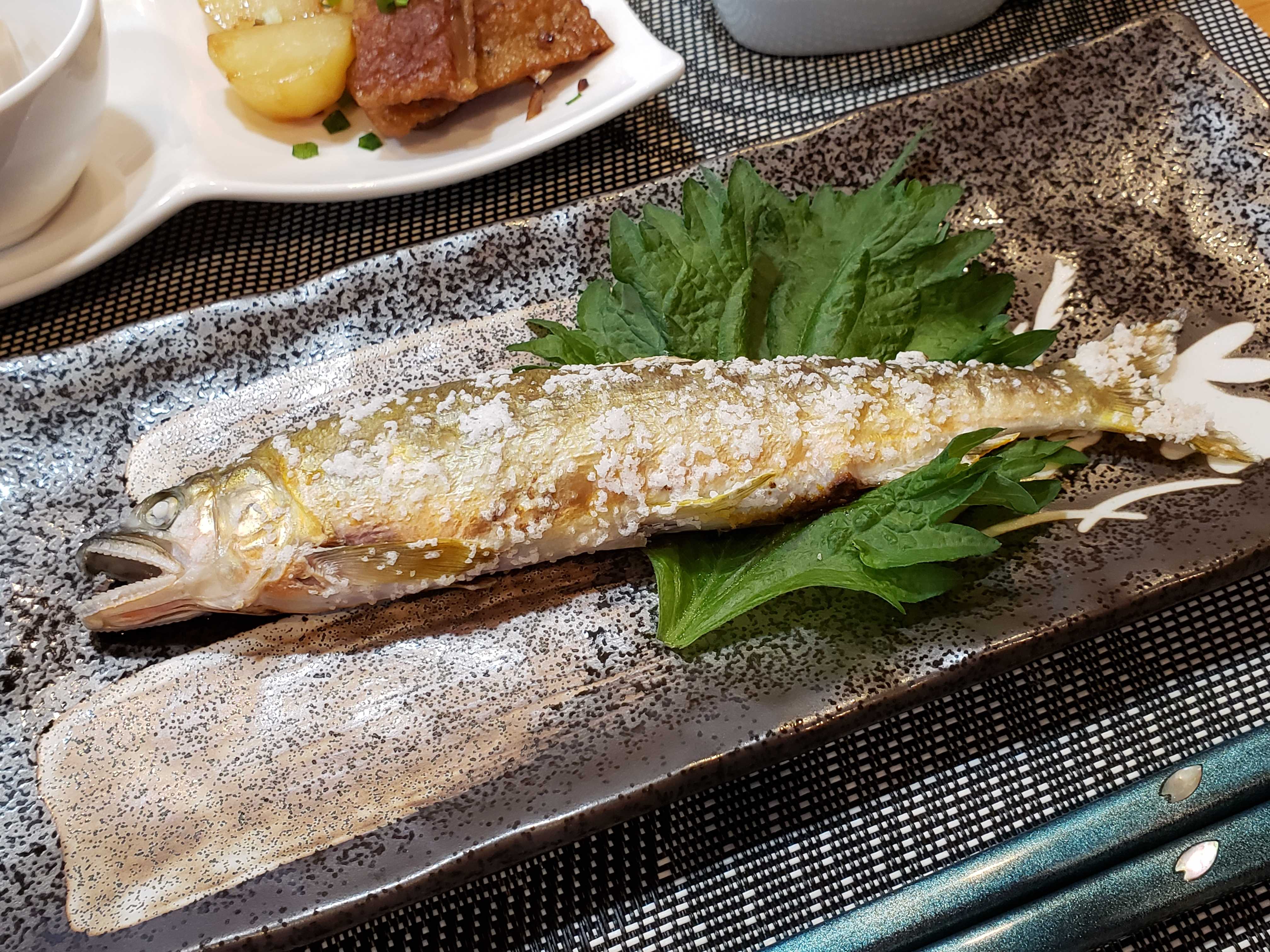 夕食のメインはアユ