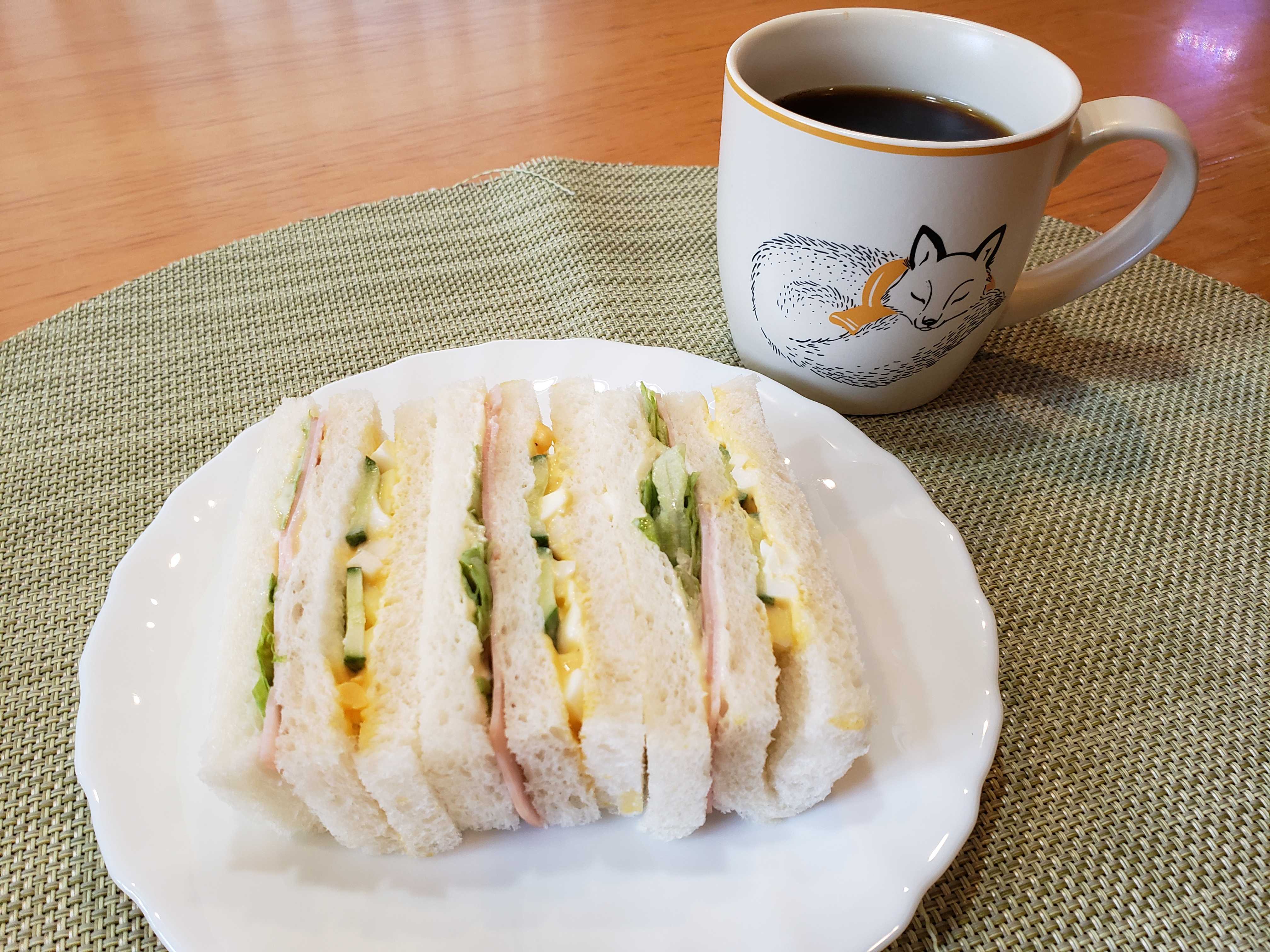 お昼にはお腹は空かず、おやつの時間にサンドイッチを