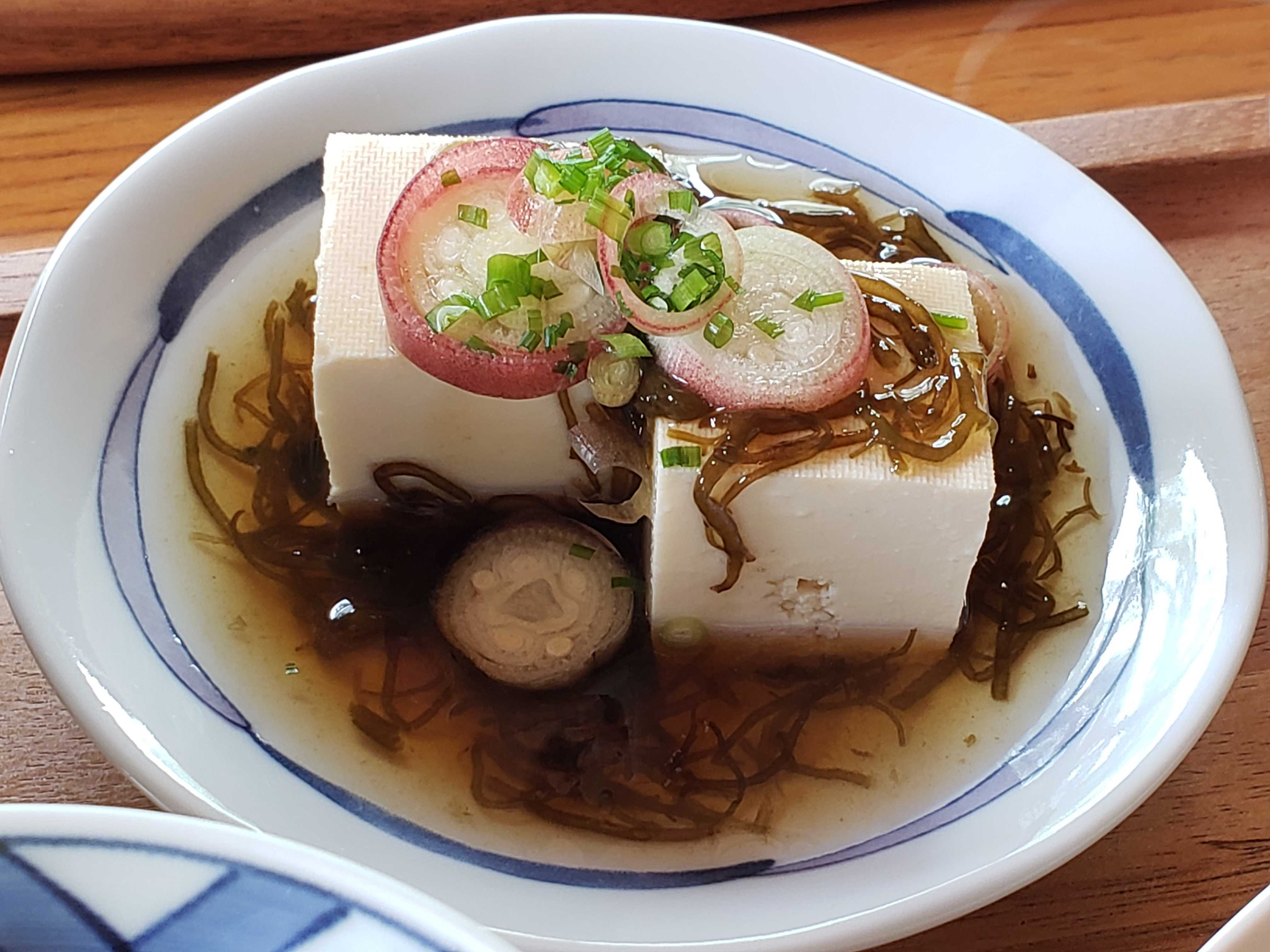 お吸い物にまたまた豆腐、これで賞味期限が近い豆腐を食べきりました。
