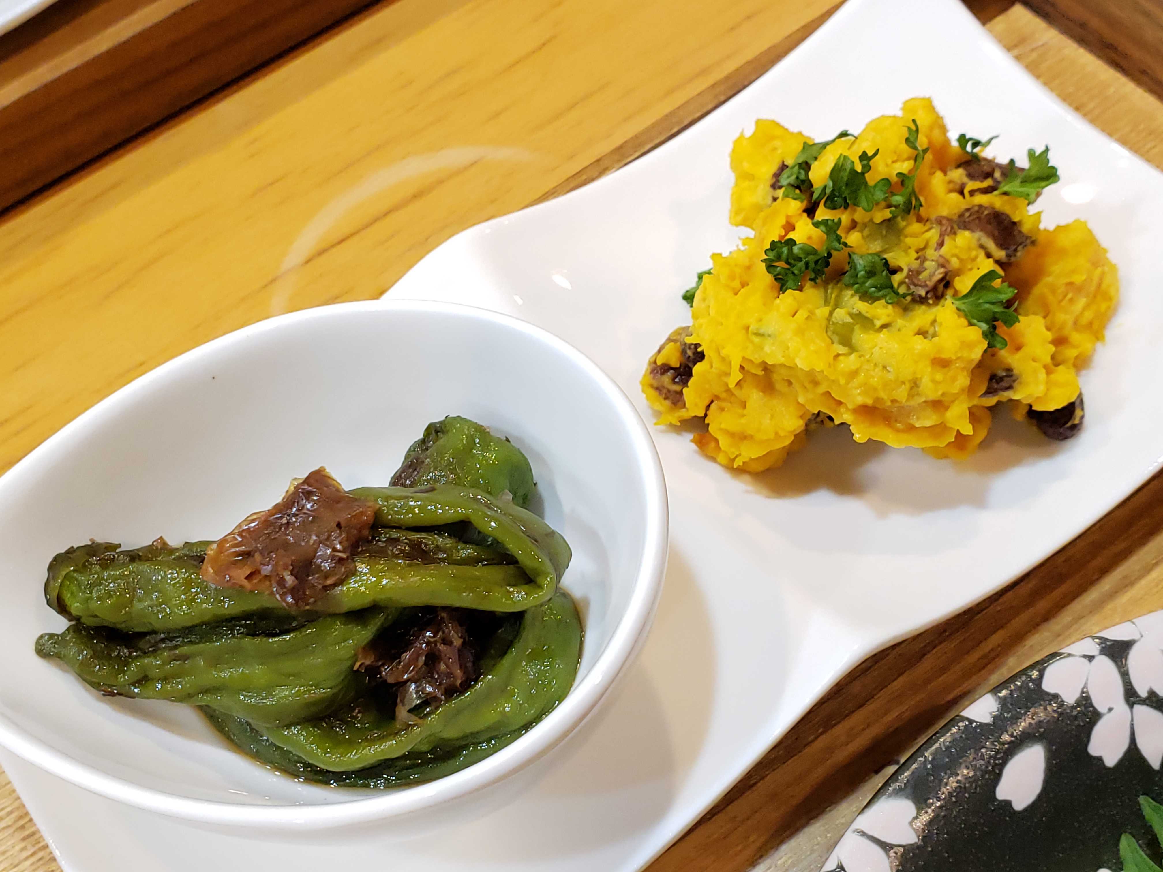 甘唐辛子の炒め物 かぼちゃのサラダ