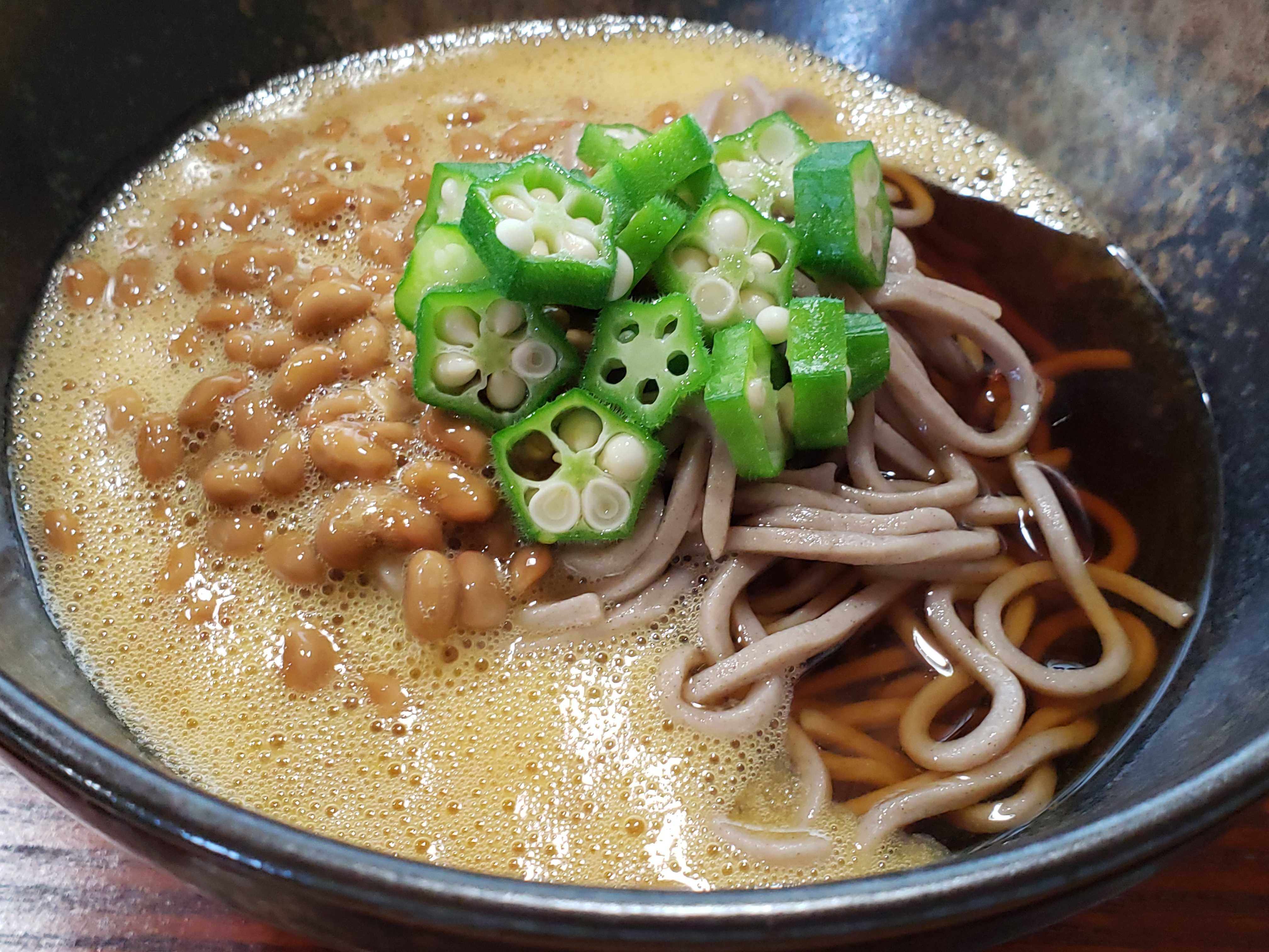こんな日は冷たい麺類がいいよね、ってお昼は卵納豆冷やし蕎麦を