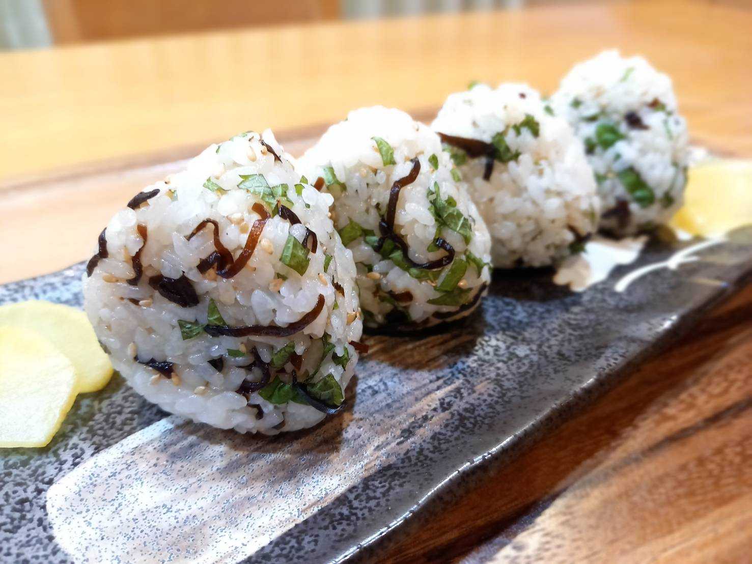 大葉と塩昆布のおにぎり 沢庵
