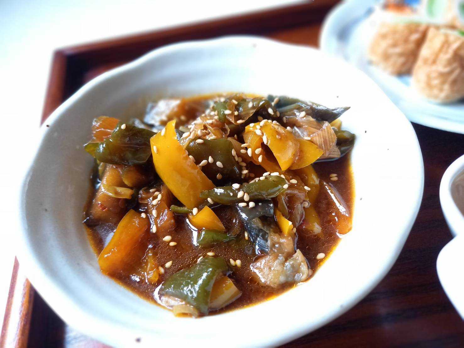 パプリカと茄子の甘辛味噌炒め
