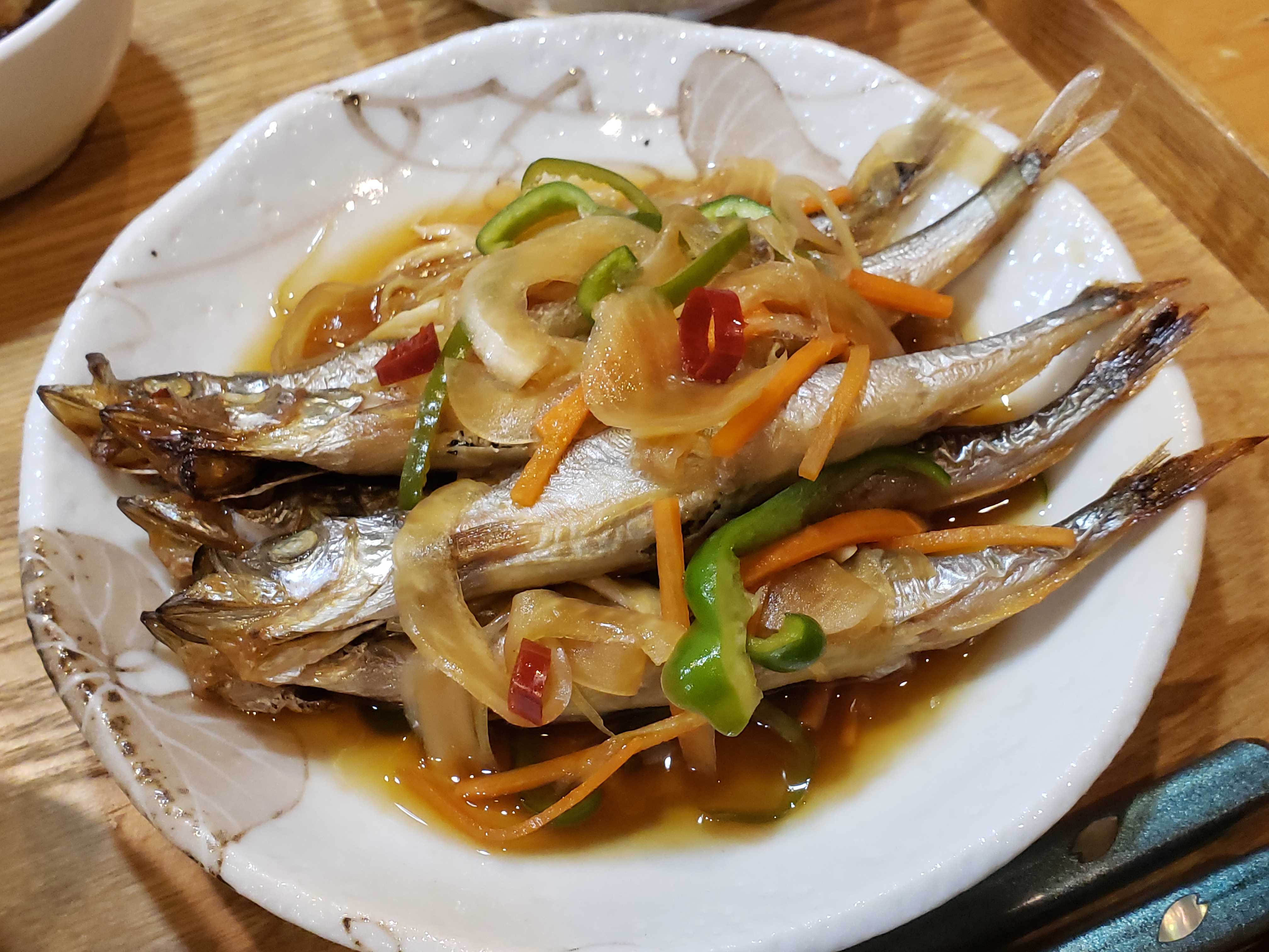 たまに食べたくなる南蛮漬け、ししゃもだと頭から全部食べれます。