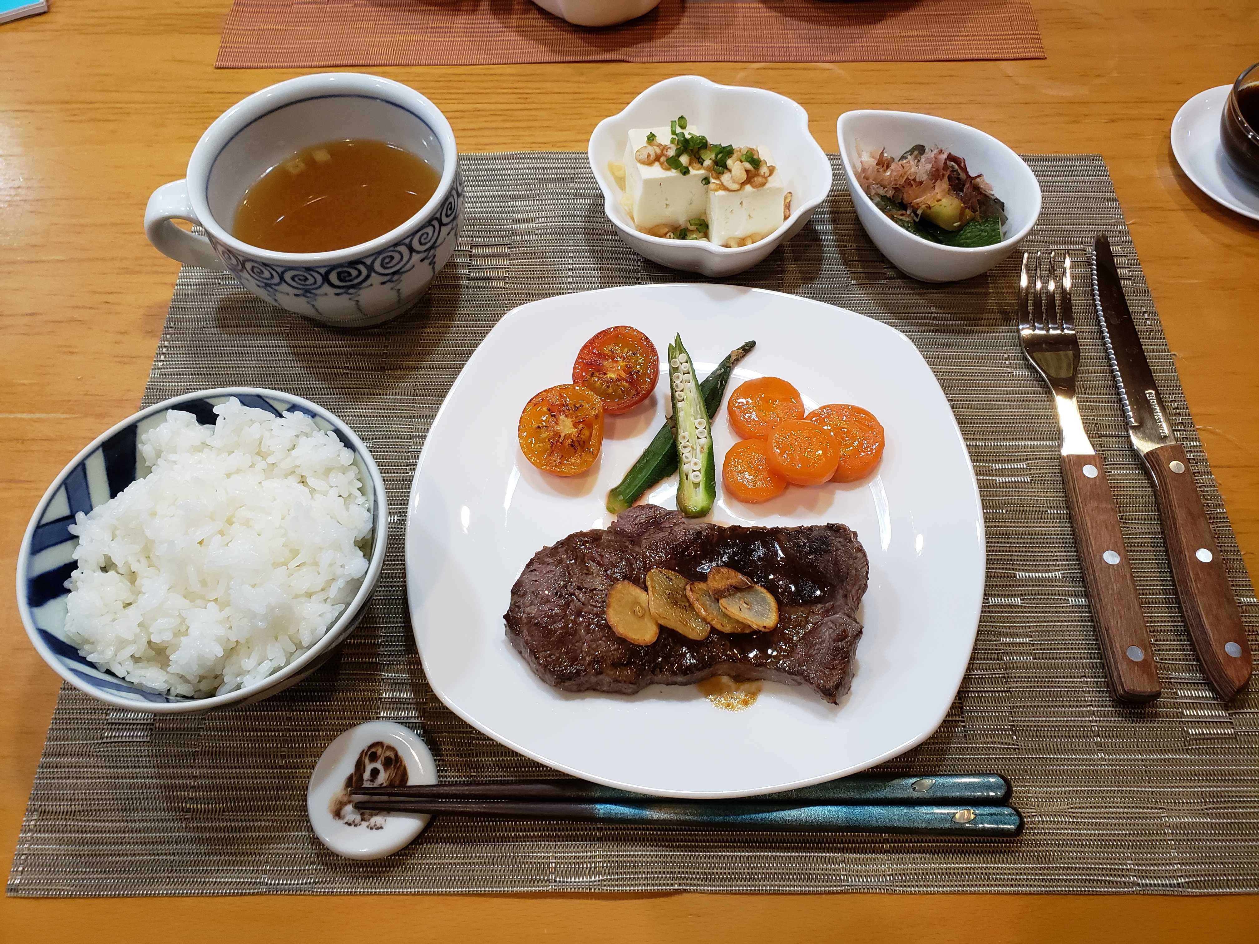 ステーキ、って言っても100g程のミスジ、ガッツリではなかったです。