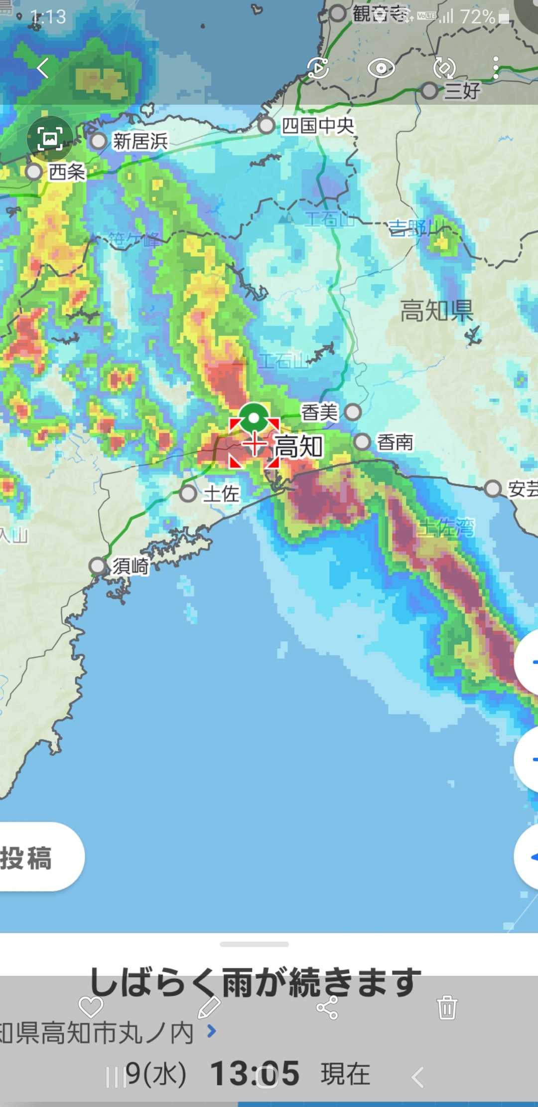 ふとテレビをつけると四国に線状降水帯発生としょんぼり