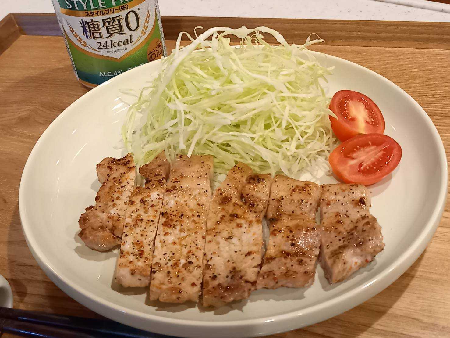 豚ロースのスパイス焼きを食べる頃にはパピーは焼酎のロックをぺろり