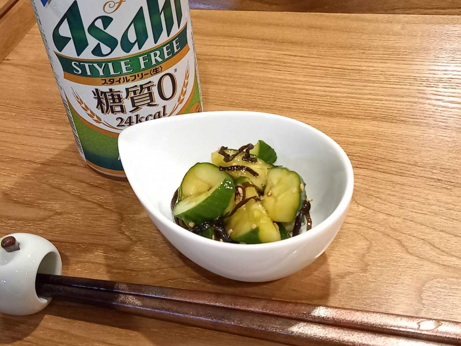 きゅうりの塩昆布和えでをつまみに飲み始め