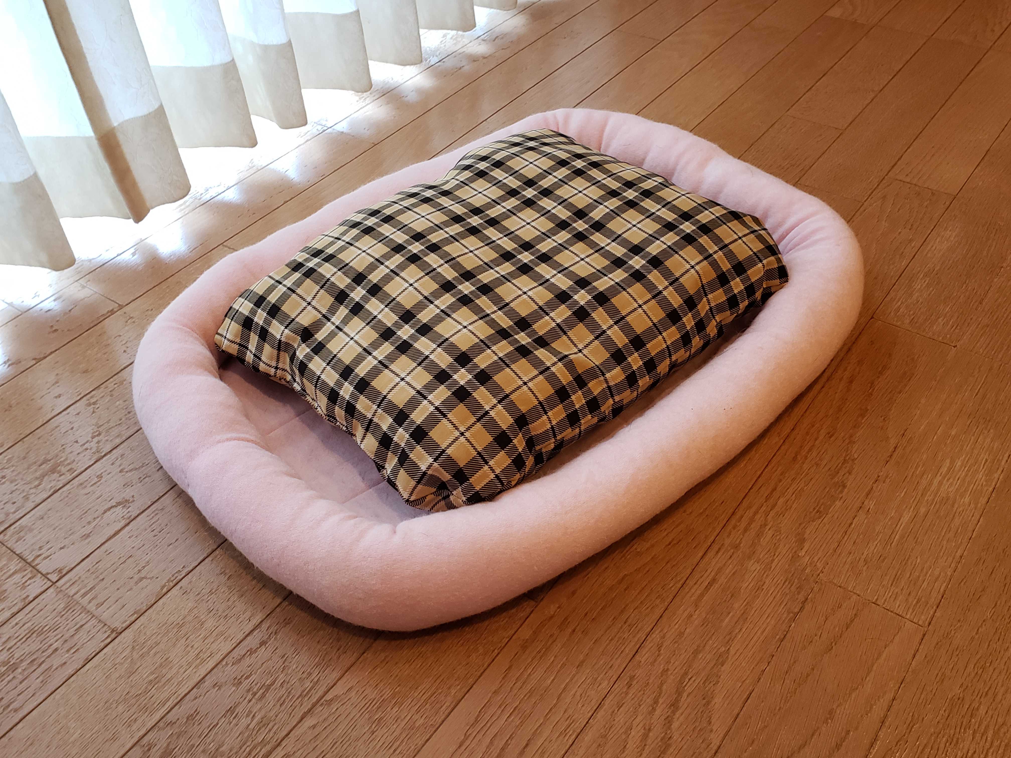 暇なパピーは女房リクエストでワンちゃんのクッションをミシンであみあみ、