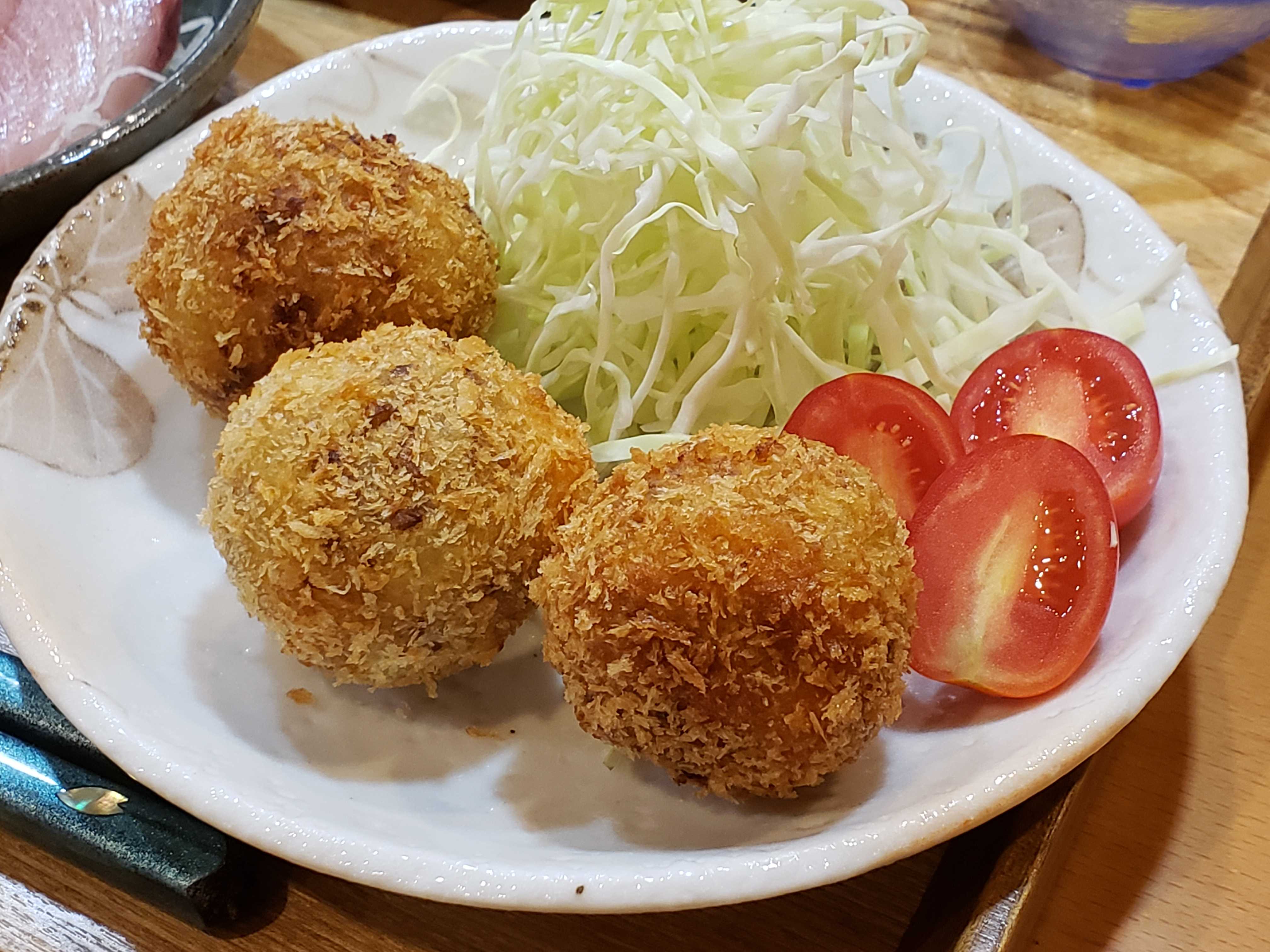 夕食はポテトコロッケがスライド登板、(献立では6日予定)