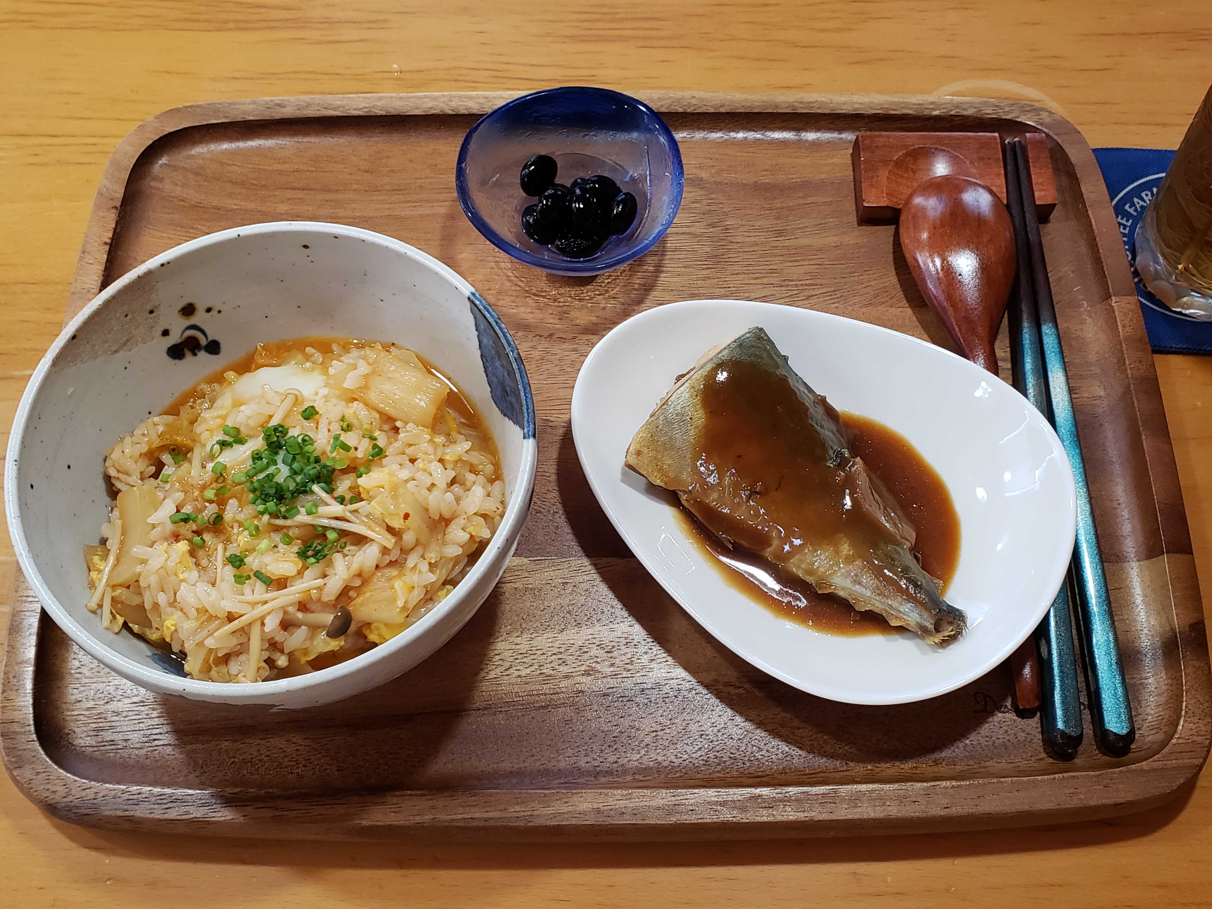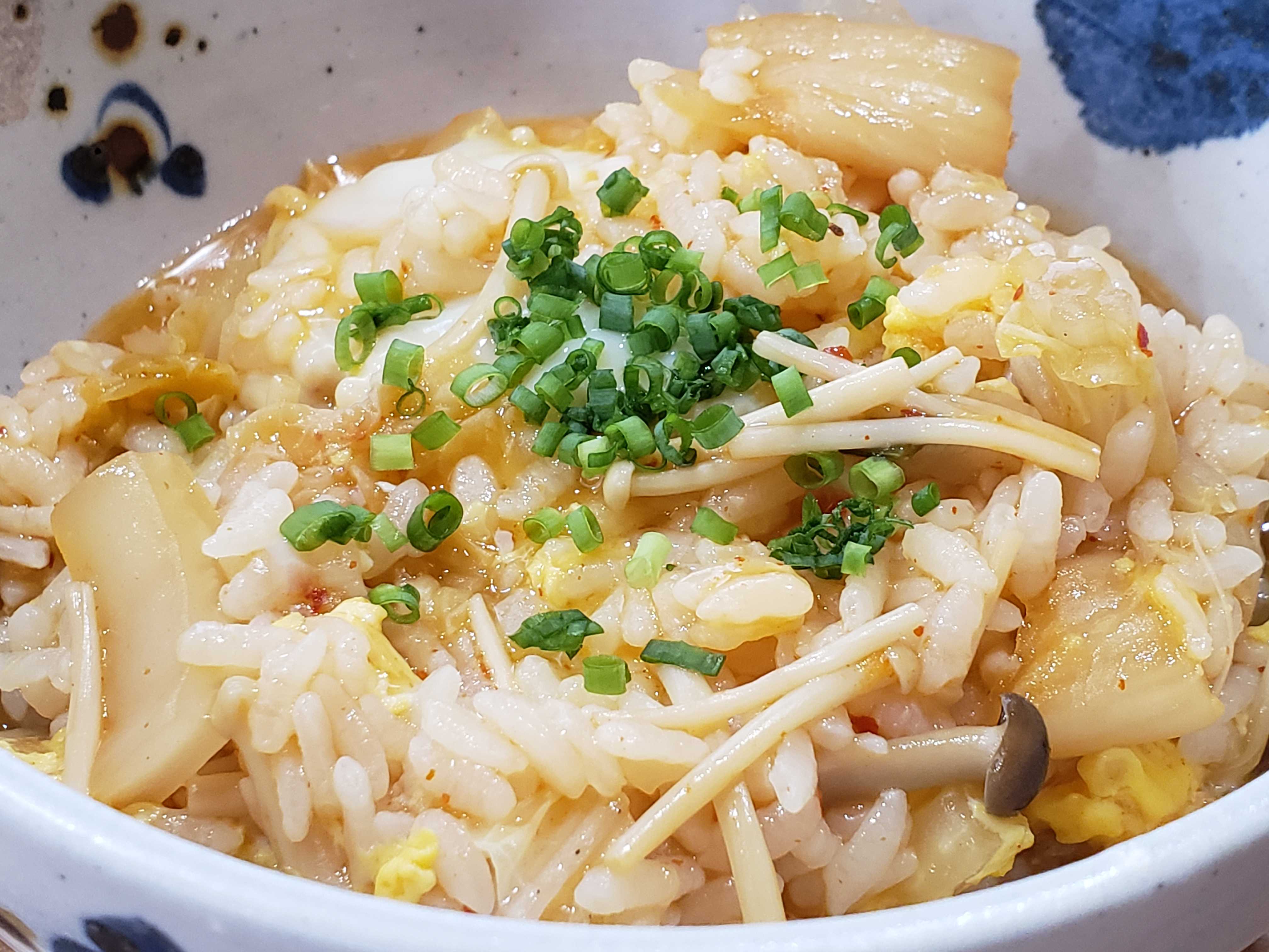 お昼は冷凍ご飯の消費と称してキムチ雑炊でした。