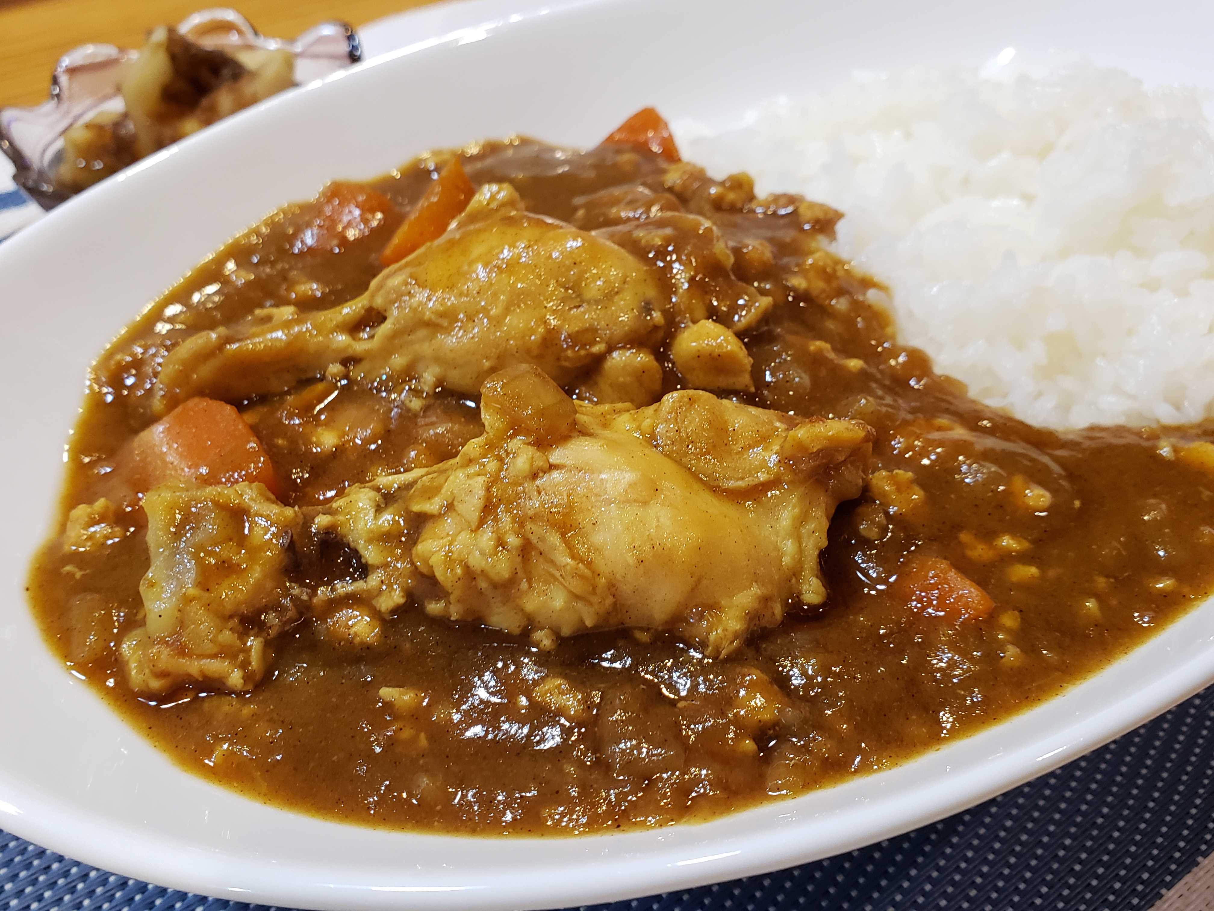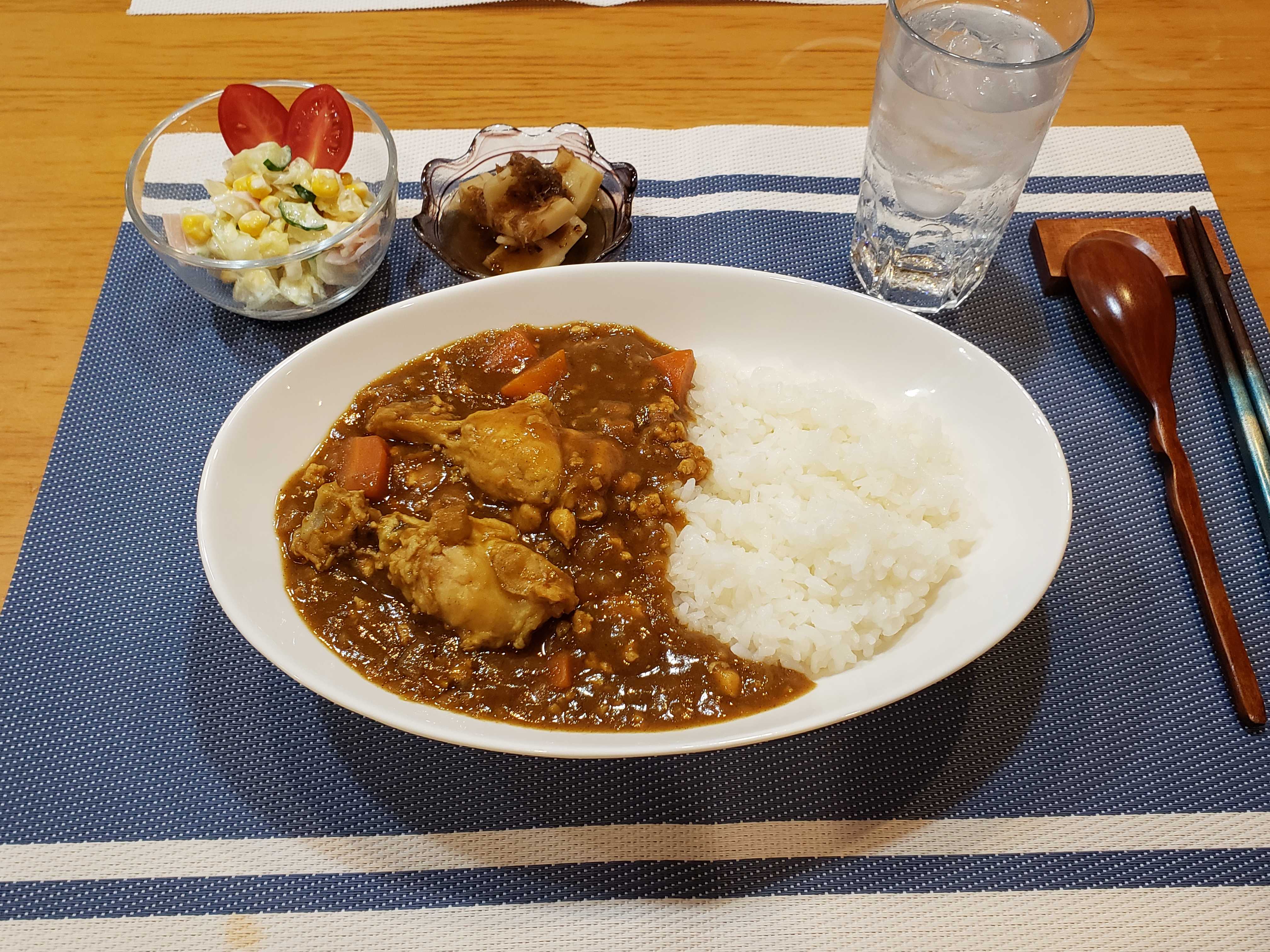 お肉は鶏ミンチと手羽元、野菜は玉ねぎと人参、後はにんにく、生姜を使ってます。