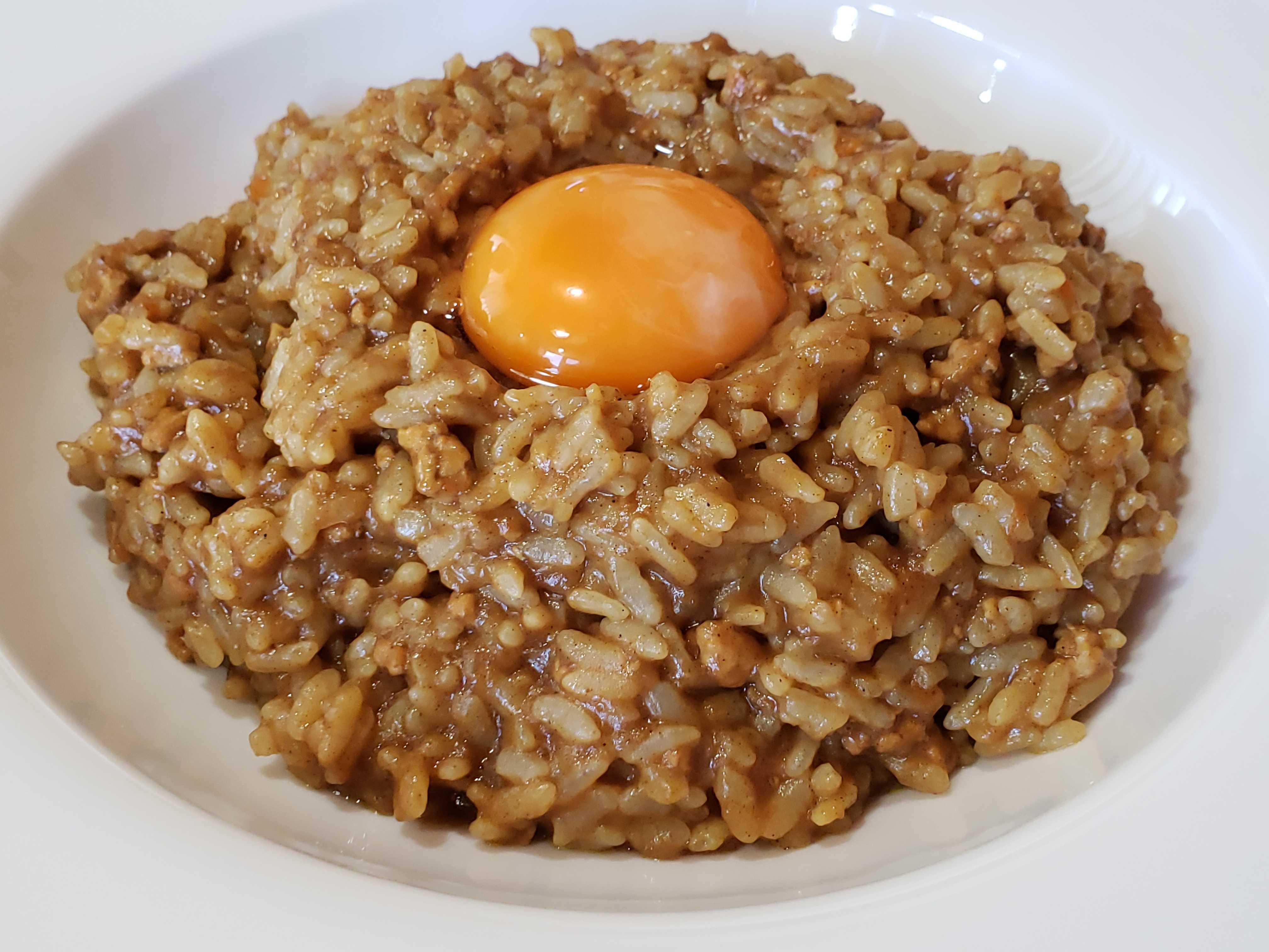 昨日のお昼はチキンカレーのリメイクで自由軒風カレーでした。