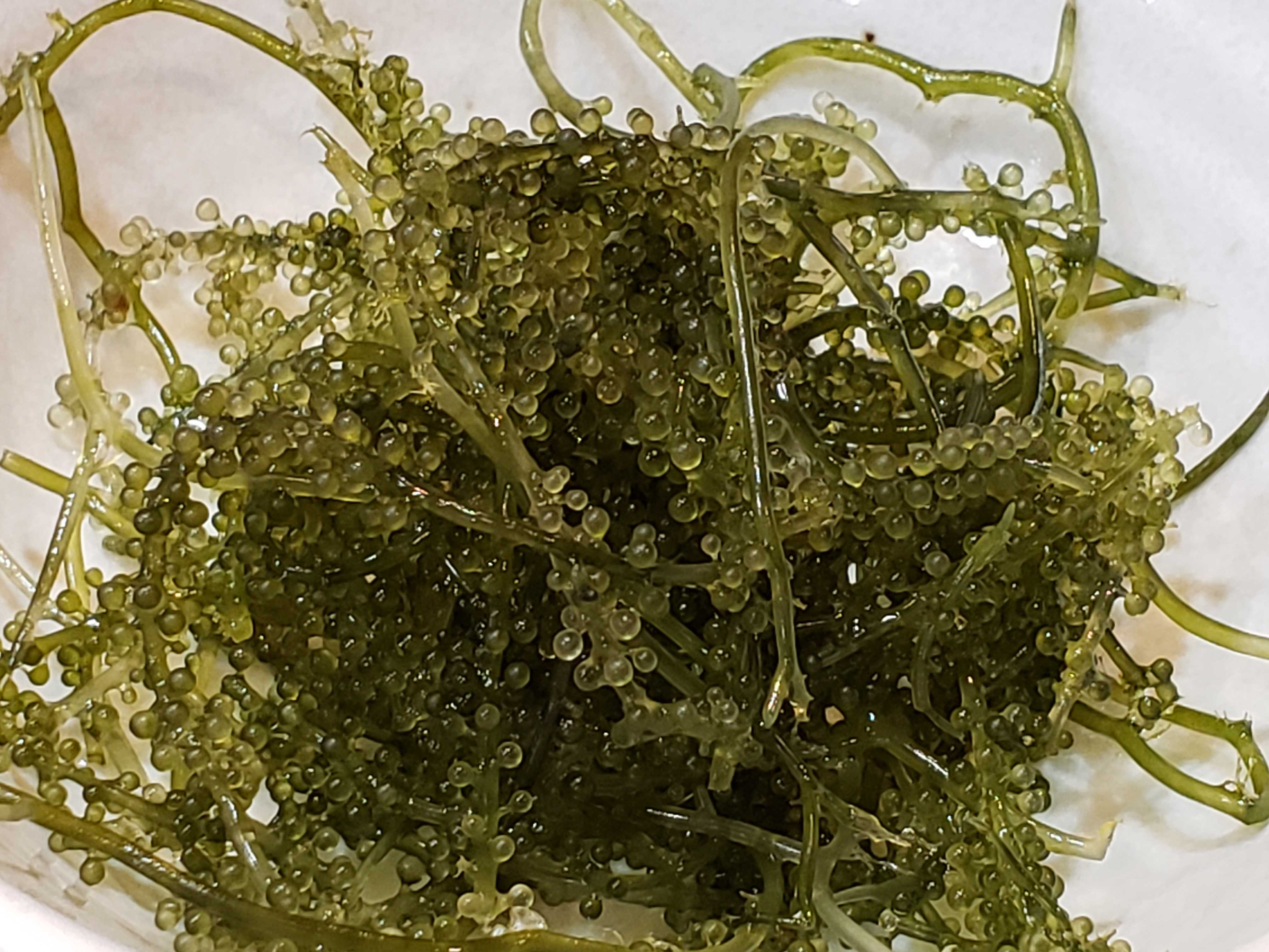 スーパーで見つけた海ブドウ、大好きだから手が出ちゃいました。