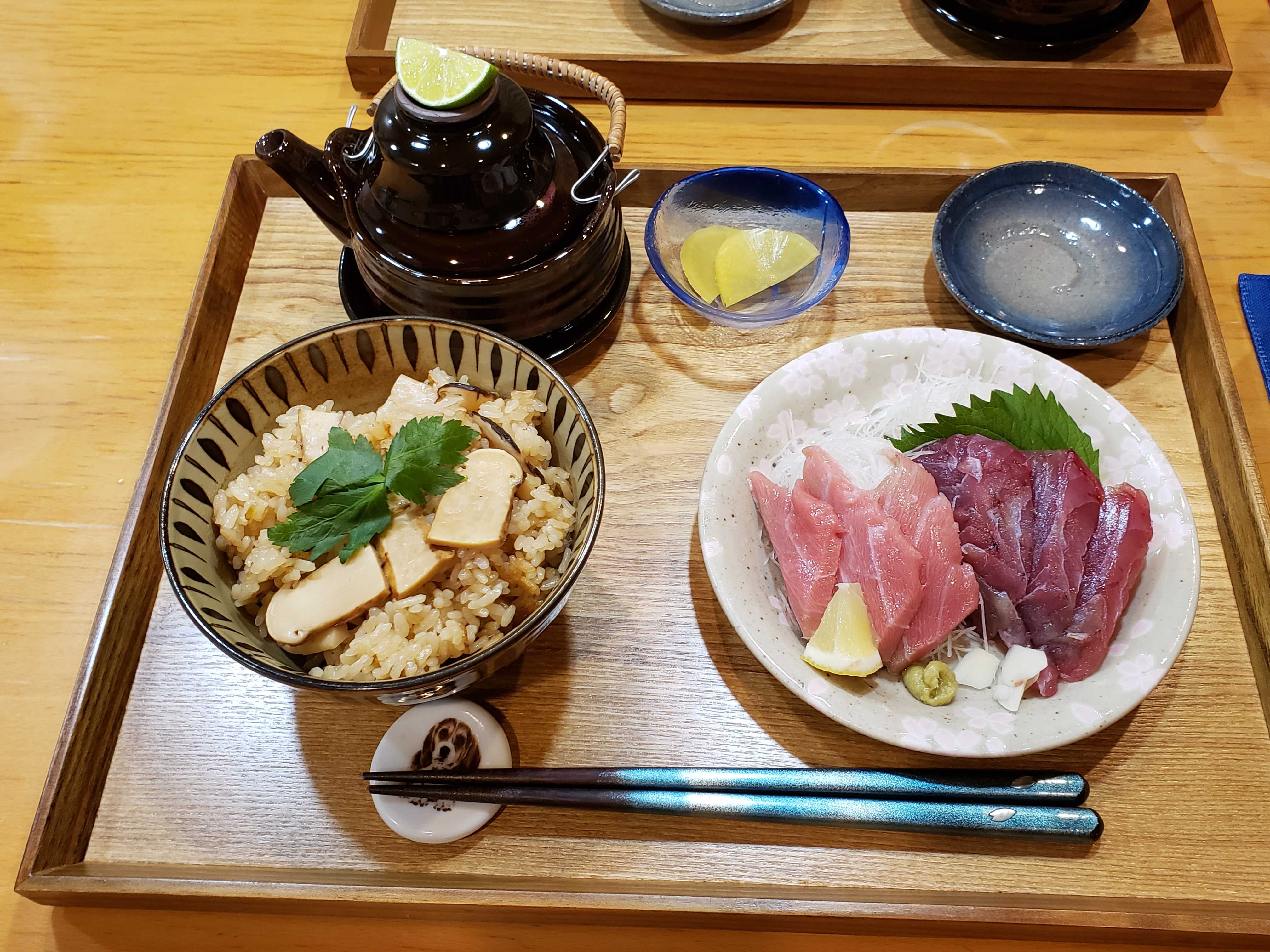 ご飯に土瓶蒸しと結構手間が掛かるからおかずはお刺身、