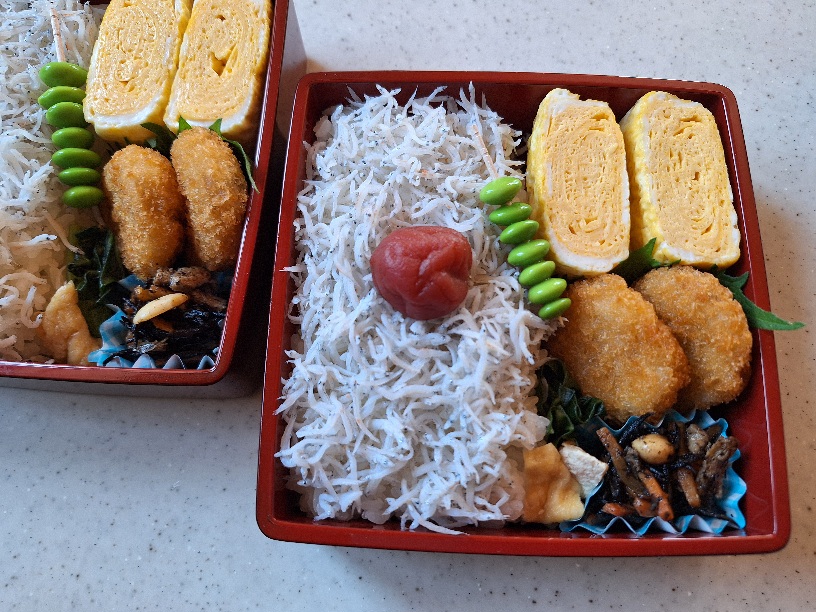 簡単手作り弁当、名付けるなら・・・、しらす弁当かな・・・。