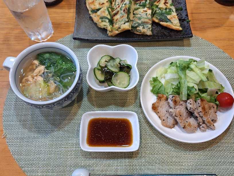 冷凍してたヒレ肉が少なかったのでチヂミを焼いて貰ったんですが、焼いてる時の香ばしいごま油の香りに負けまして