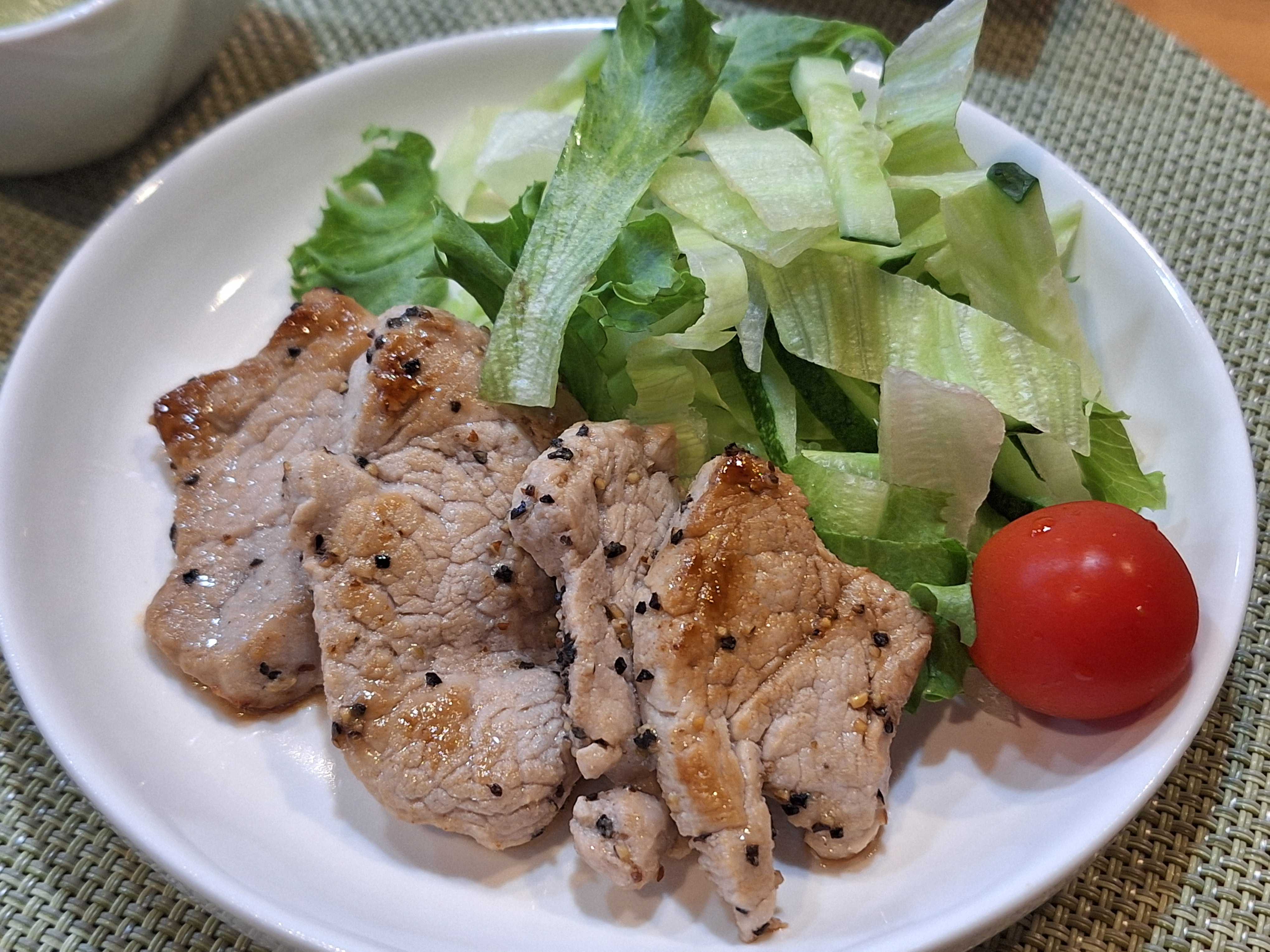 豚ヒレ肉のレモンペッパー焼き サラダ