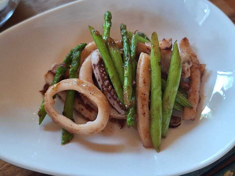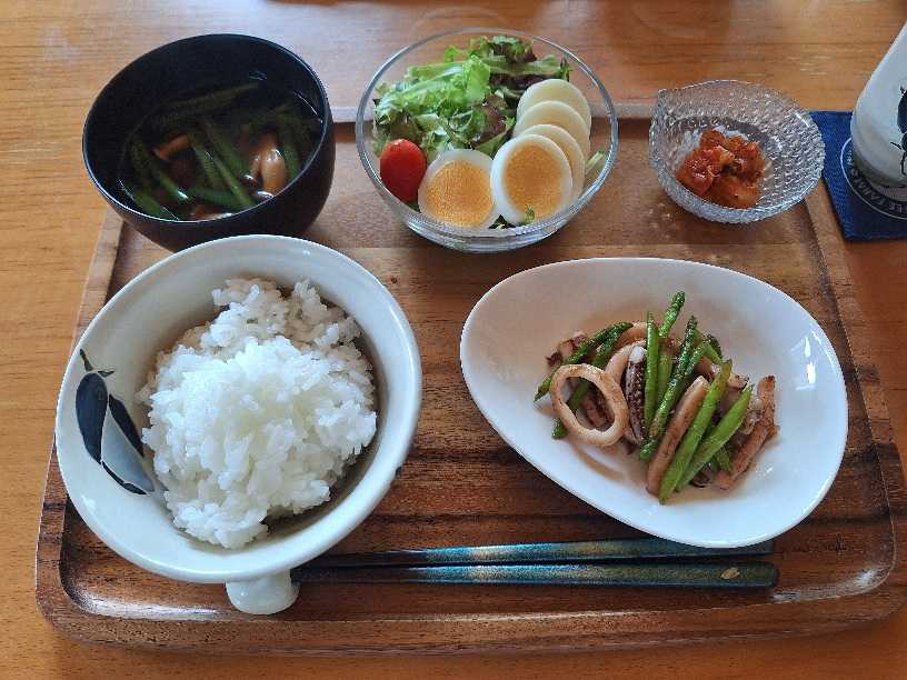 お昼はイカとアスパラで一品