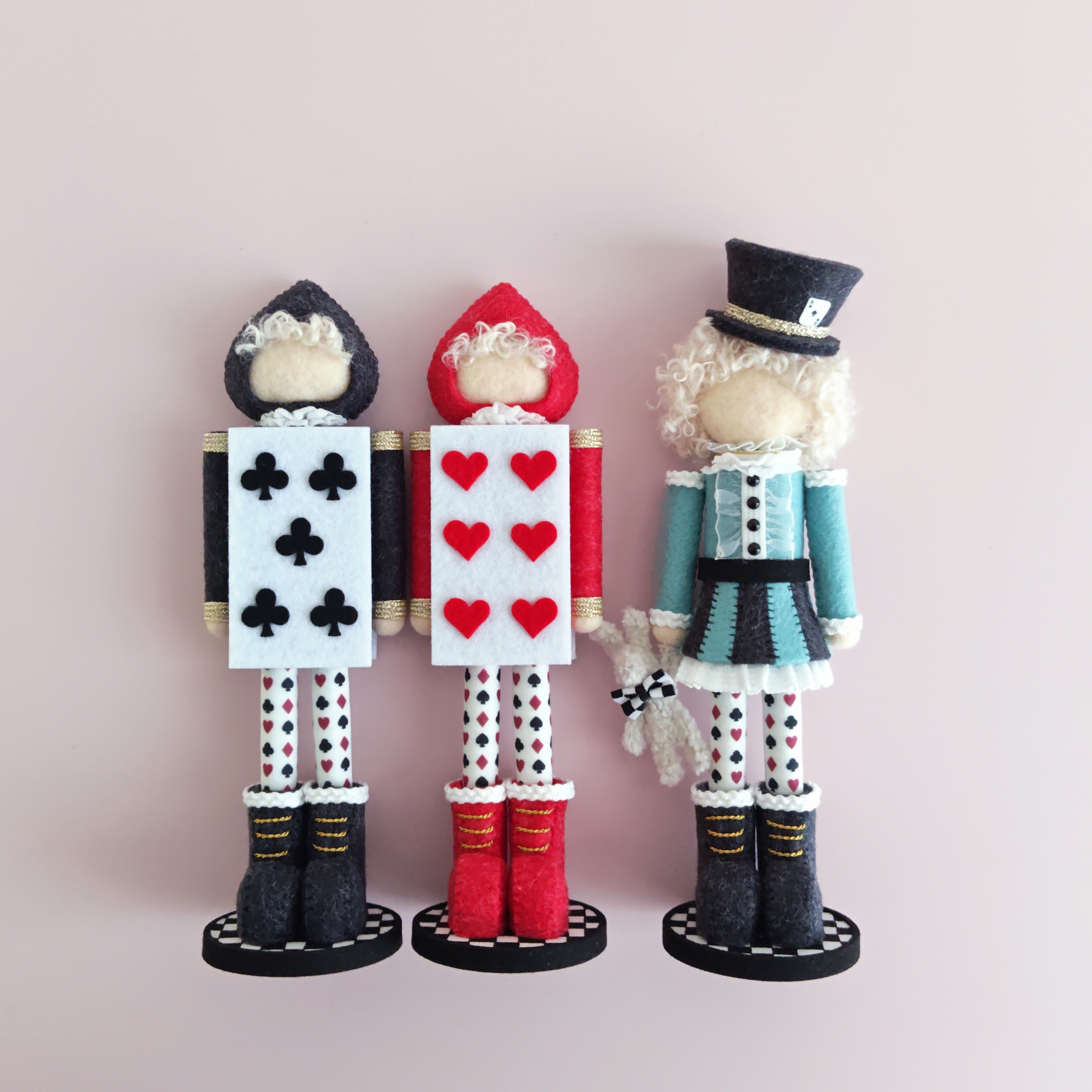 くるみ割り人形のアリスができました♡「アリス」と「クラブの5」と「ハートの6」です。白うさぎさんもいますよ。アリスの世界観を楽しめますね♡