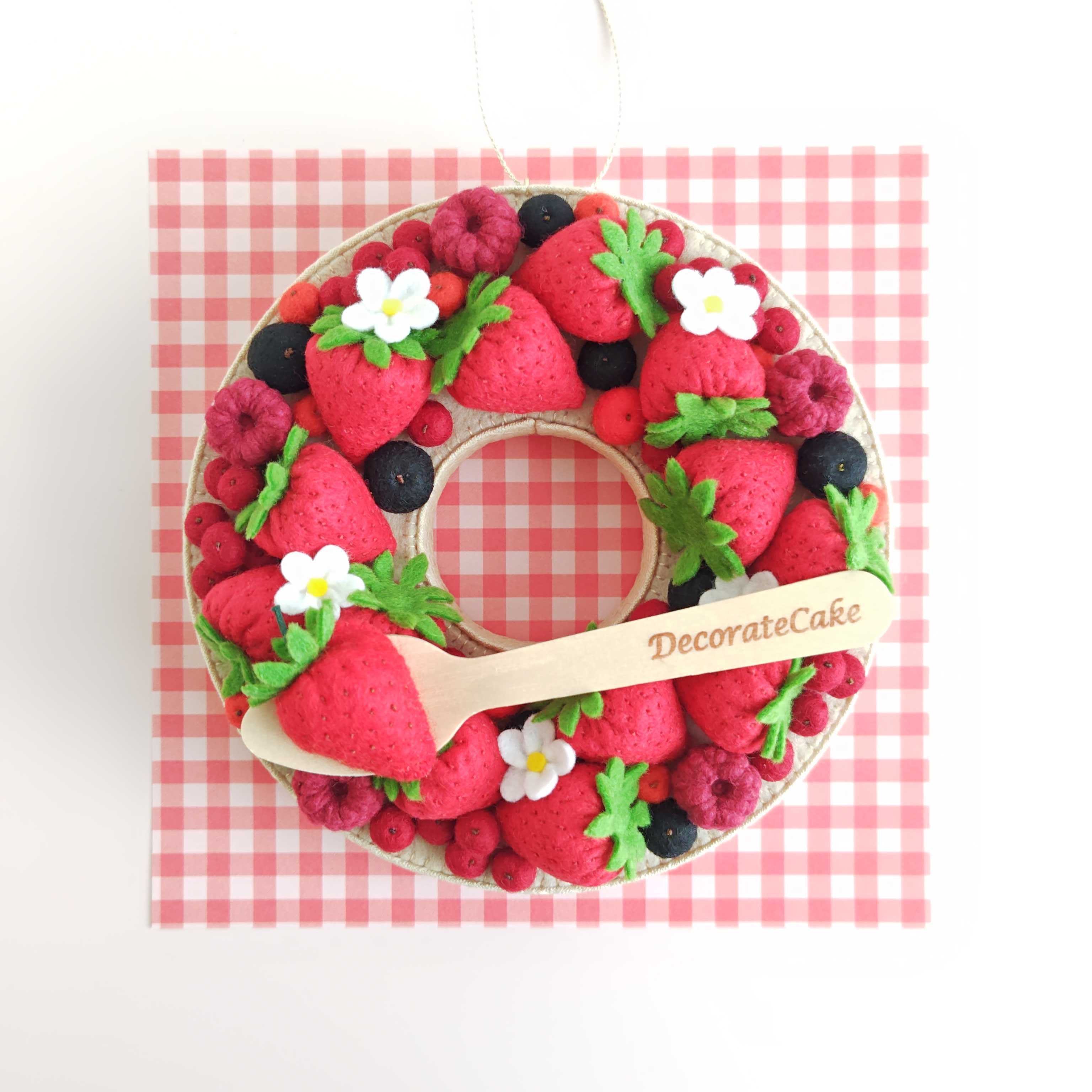 新作ができました!壁に飾れるケーキのリース。いちごとベリーをたっぷりのせたいちごタルトのリースです。
