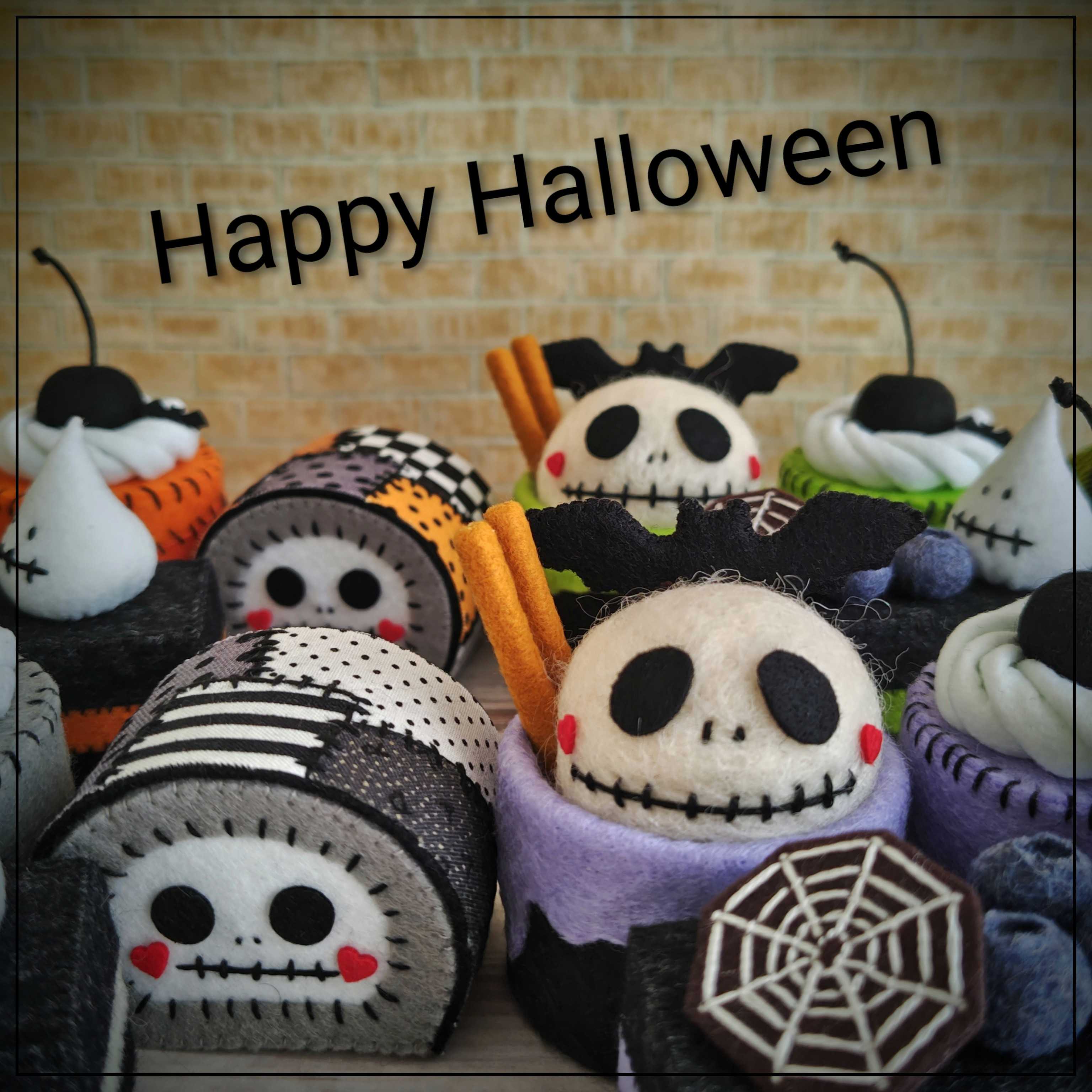 ハロウィン作品の製作を開始しました☆今年も『怖くないハロウィン』をテーマに、可愛らしいデコレーションで作っています。製作期間限定・数量限定です。今回はハロウィンケーキ4種セット。オレンジ・きみどり・モノトーン・パープルの4色です。ケーキは4種類。◎こうもりとプレッツェル付き☆ドクロちゃんのカップアイス◎縫い目入り☆ブラックチェリーのケーキ◎おばけのメレンゲクッキーと蜘蛛の巣チョコプレートのせ☆ブルーベリーのスティックケーキ◎ツギハギ模様☆ドクロちゃんロールケーキHappy Halloween~☆