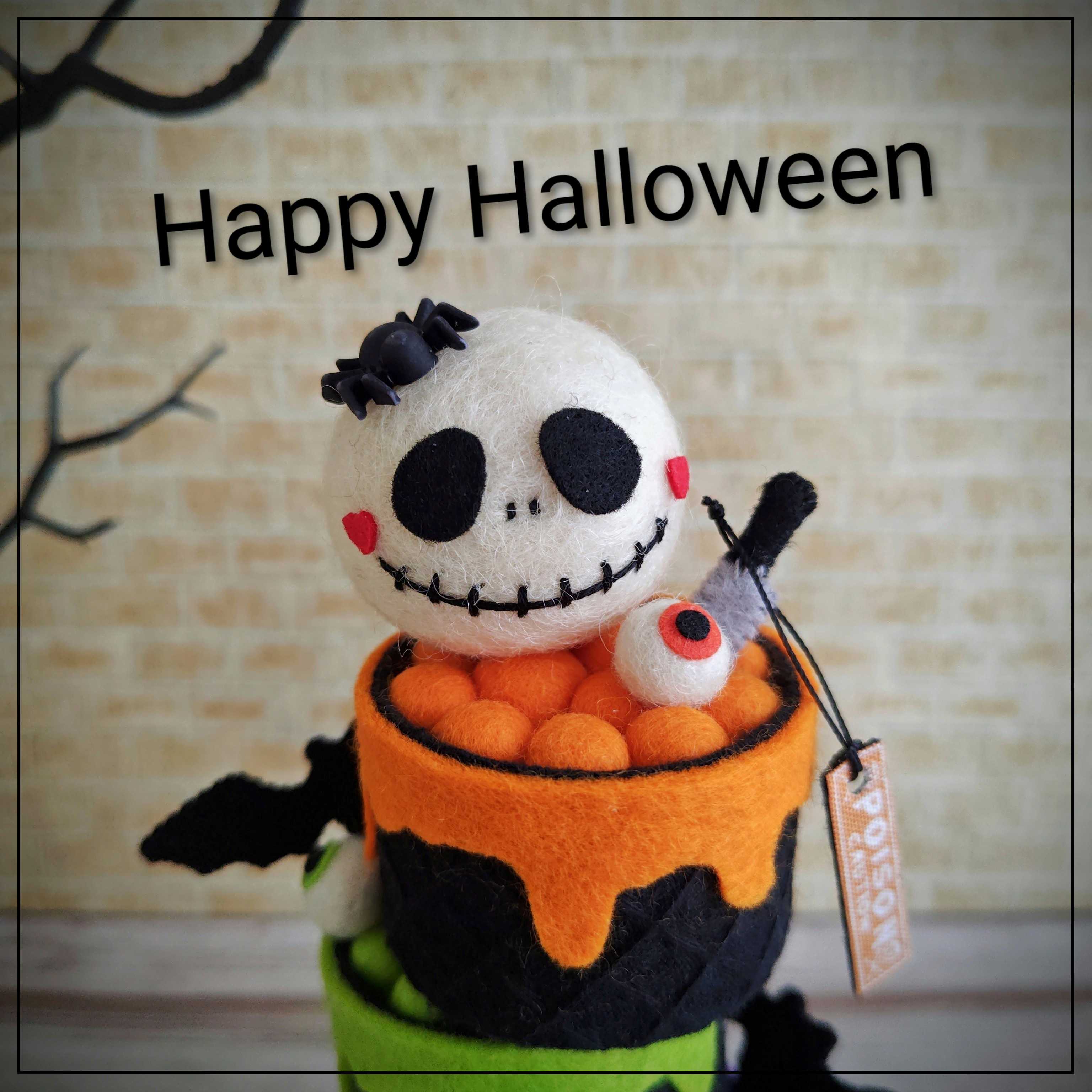 久しぶりのハロウィン作品です。今年のハロウィン作品は、『怖くない!』をテーマに可愛らしいデコレーションにしています。大きさはこのくらい。定番ハロウィンのオレンジ・パープル、大人ハロウィンのグレー・レッド、いつもと違うピンクハロウィン。今年はどんなハロウィンにしようかな?と考えていたら楽しくて♪今回はこの5色を作りました。