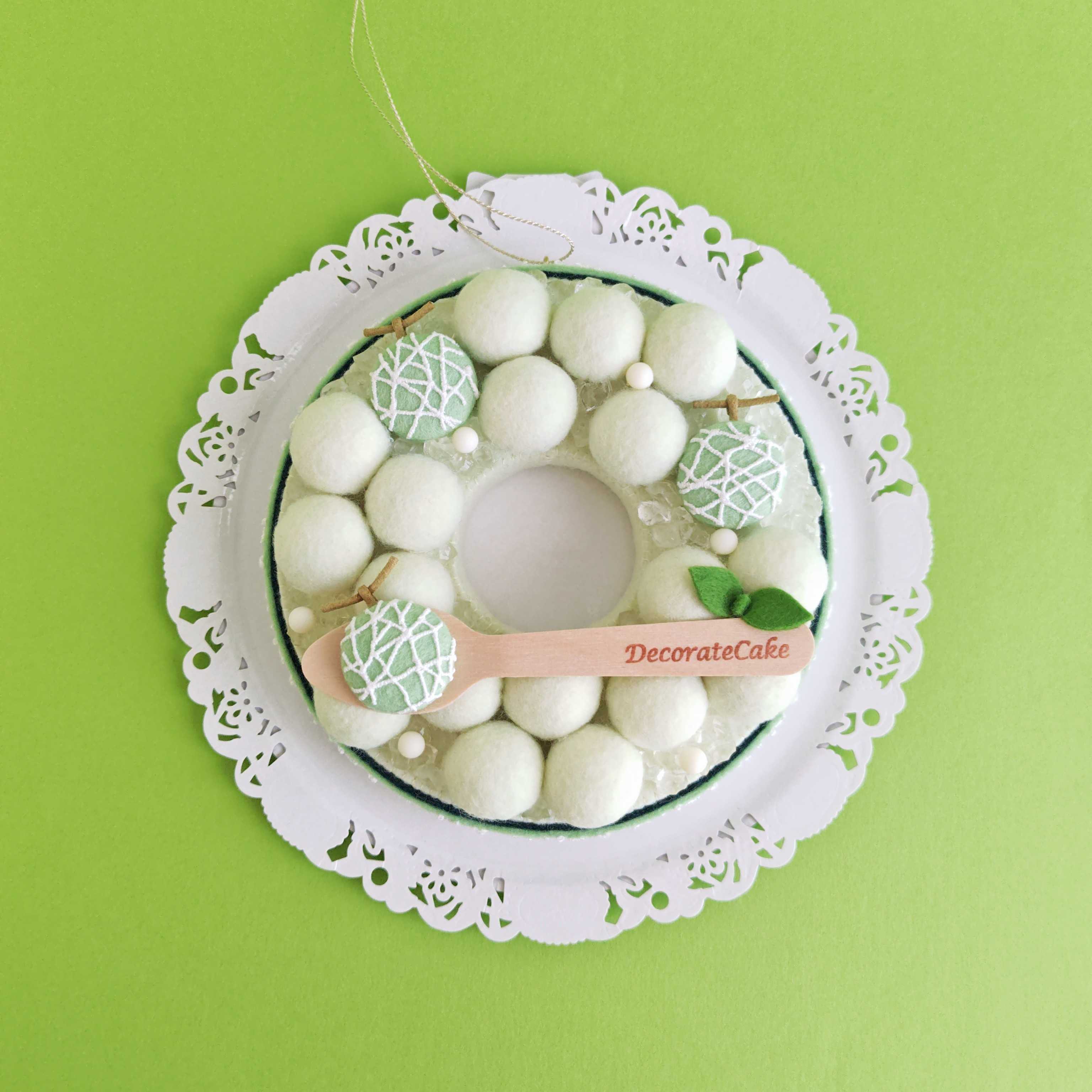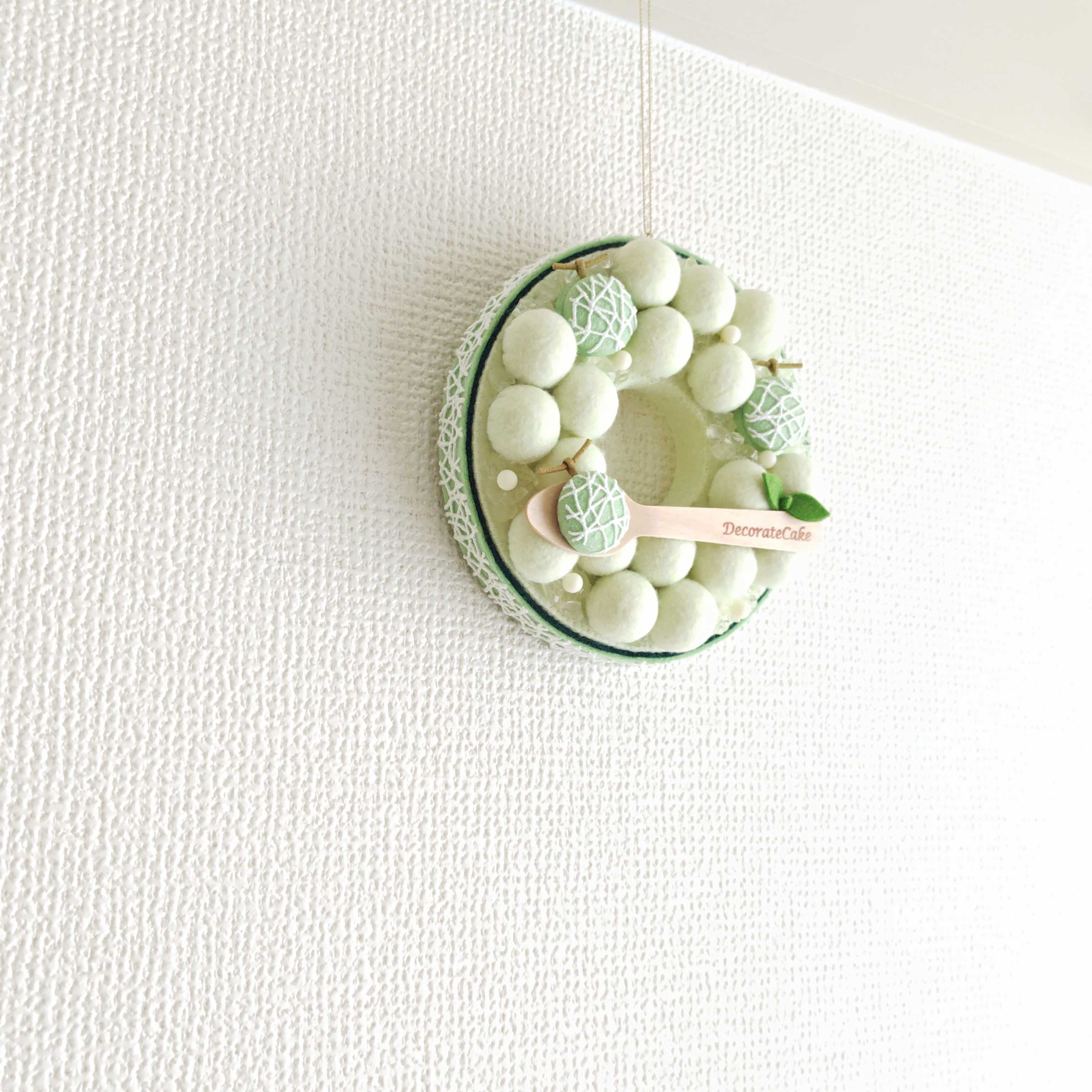 このレースを見つけた時にメロンみたいだなと思い、ケーキのリースを作っているところだったのでメロンを作ってみました。
