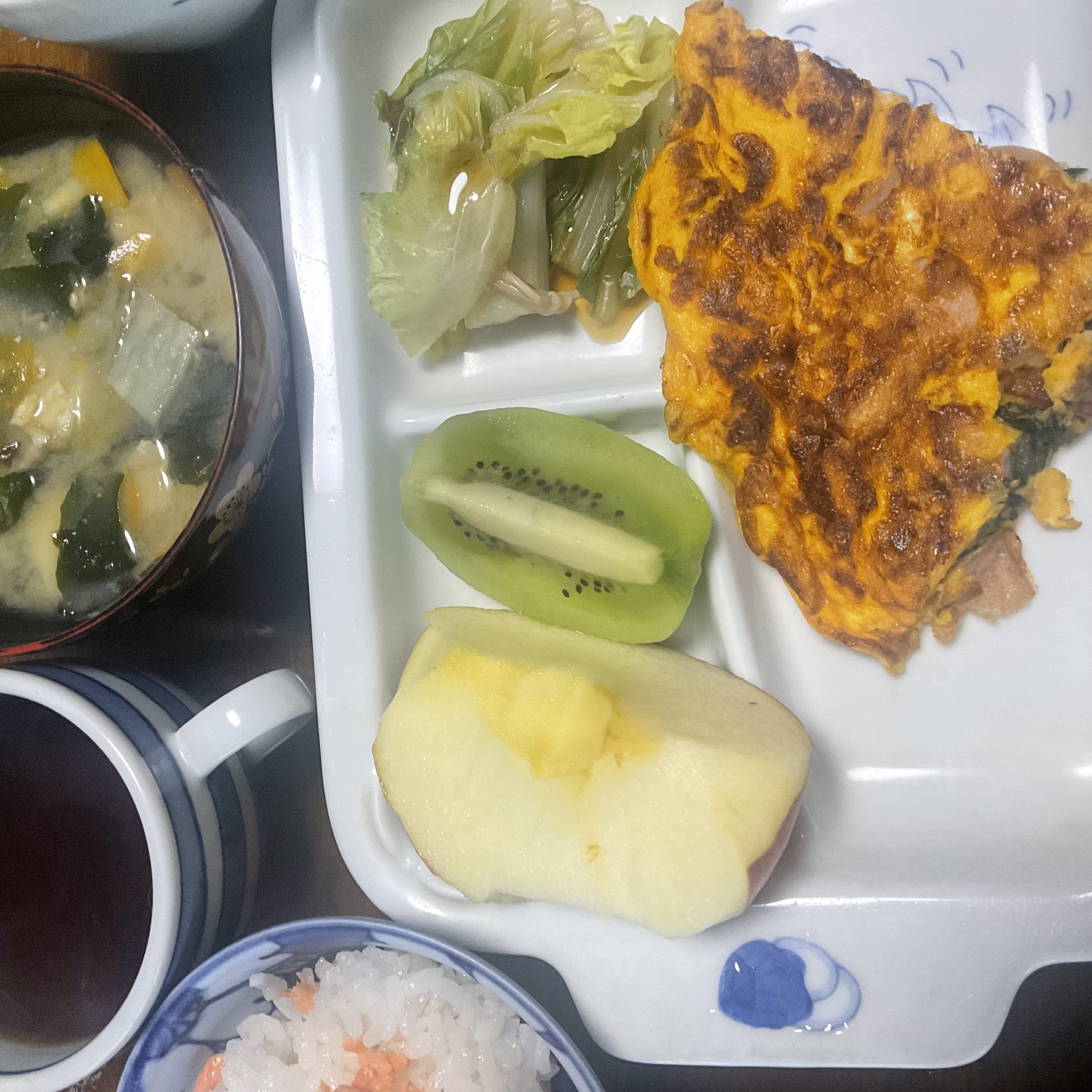おはようございます🌞孫はすぐに元気になったのですが、私はヨロヨロで、今日やっと、ちゃんと朝ごはん🍚準備できました味噌汁 ニラ入り卵 ? オムレツ?ヨーグルトごはん少なめでたくさん食べるのは、まだ怖い😱ざんすごちそうさん