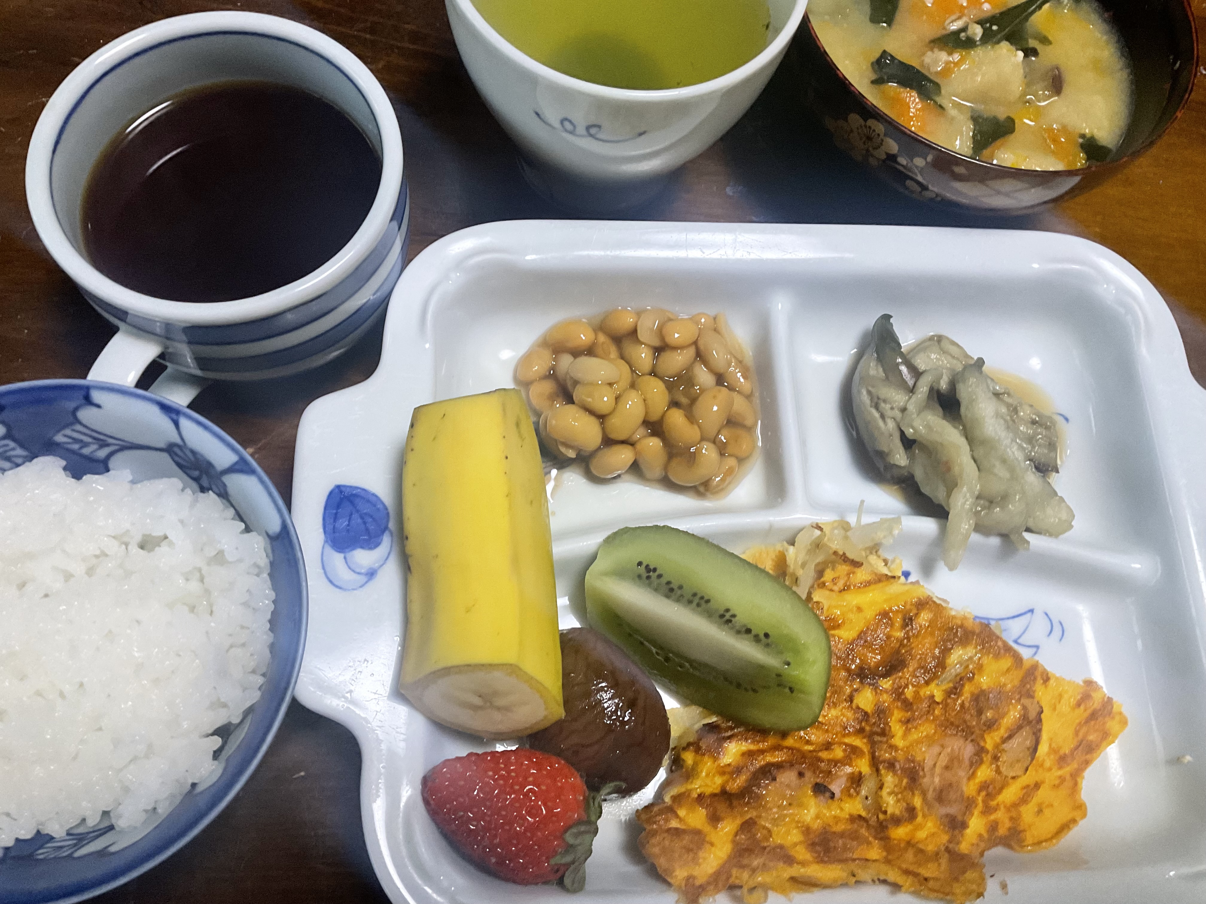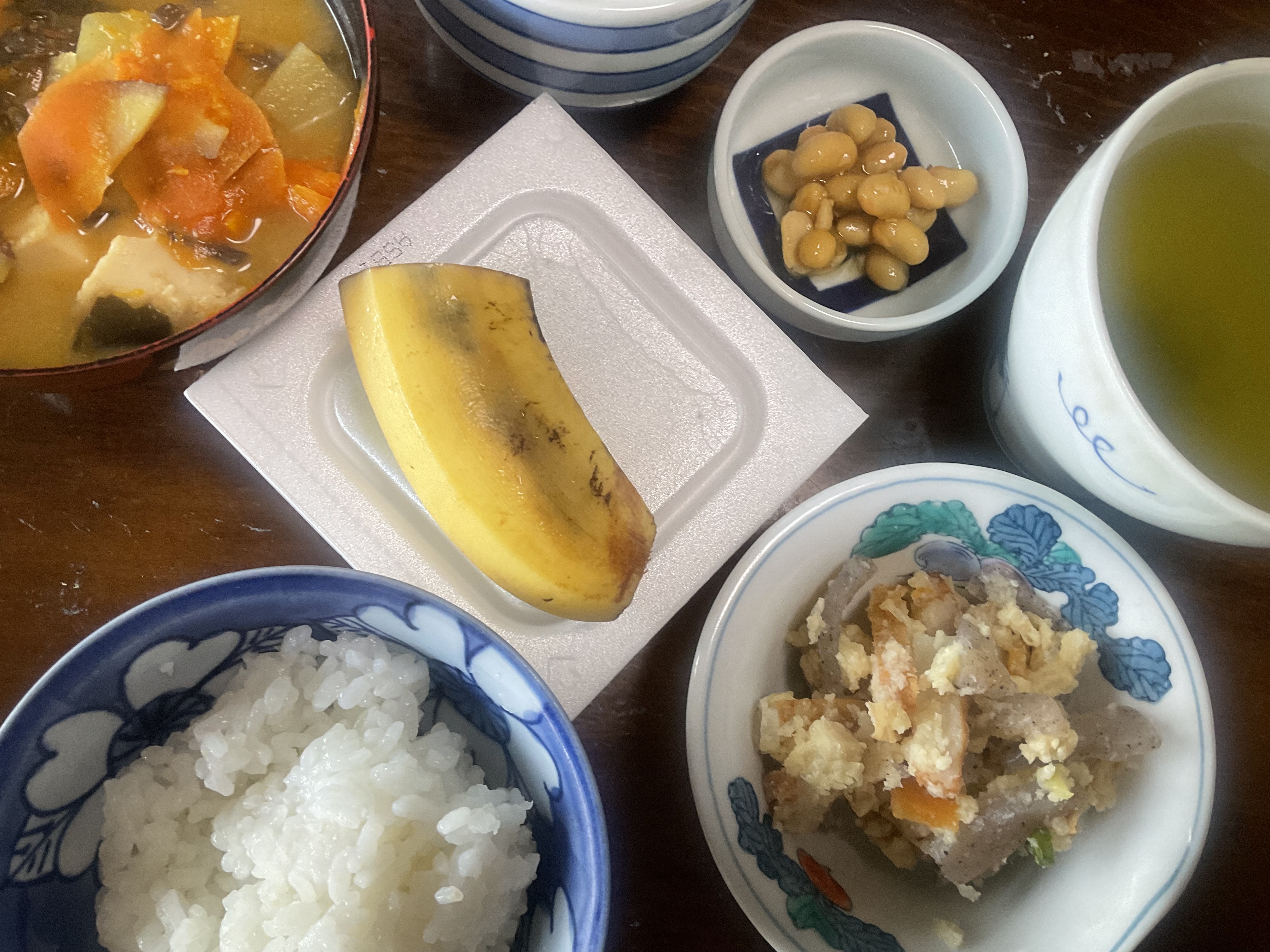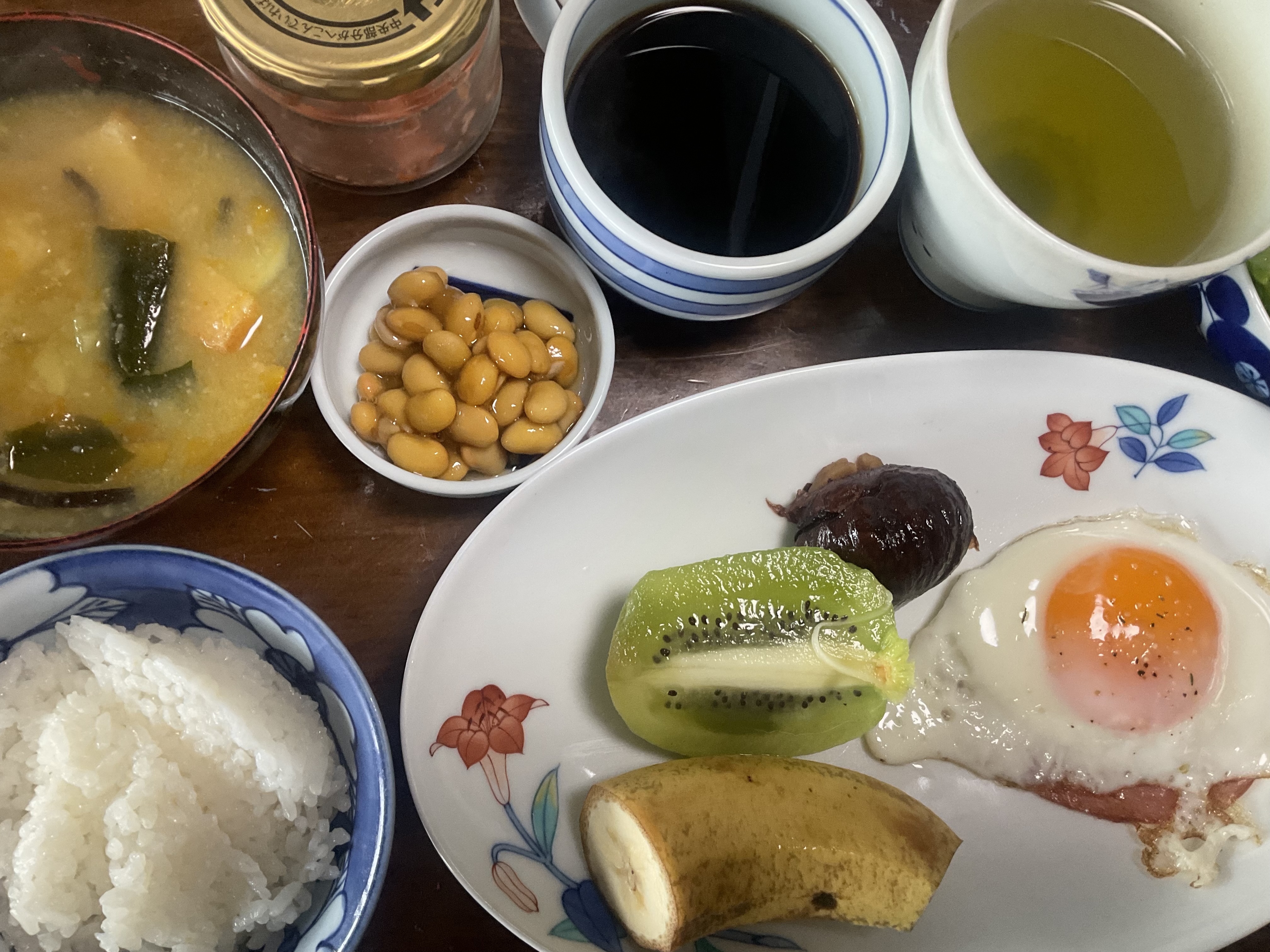 おはようございます😃昨日、ちゃんと眠れなくて、目がシパシパしてる朝ごはんです目玉焼き 味噌汁 葡萄豆 などなどところで、昨日食べすぎたらしきヒイババが、携帯電話で、今日の朝ごはんいらないと言ってきましたなんですと〜〜ただでさえ動かないから、腰やら足やら痛いのに、キッチンまでくるのも嫌がるようでは、先が思いやられますわいったいどうなっていくの〜〜って感じです
