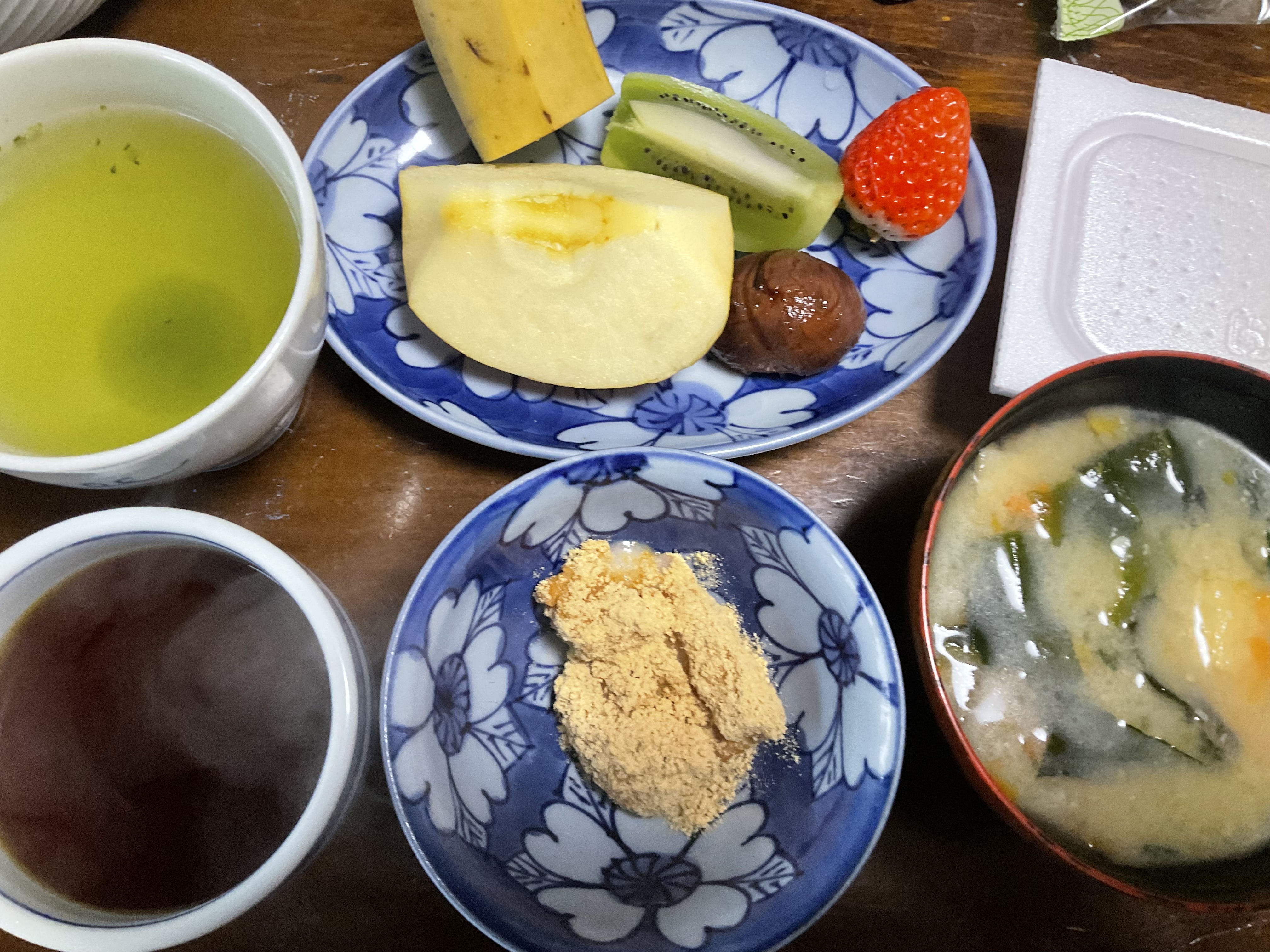 どもです日曜日で、ボーッと生きておりました朝は、冷凍庫のあんこ餅を食べることに❗️あんこ餅 味噌汁 目玉焼き🍳 フルーツ🍎いろいろ遂にあんこ餅がなくなりそうです〜〜冷凍でも、十分美味しい🤤ごちそうさん
