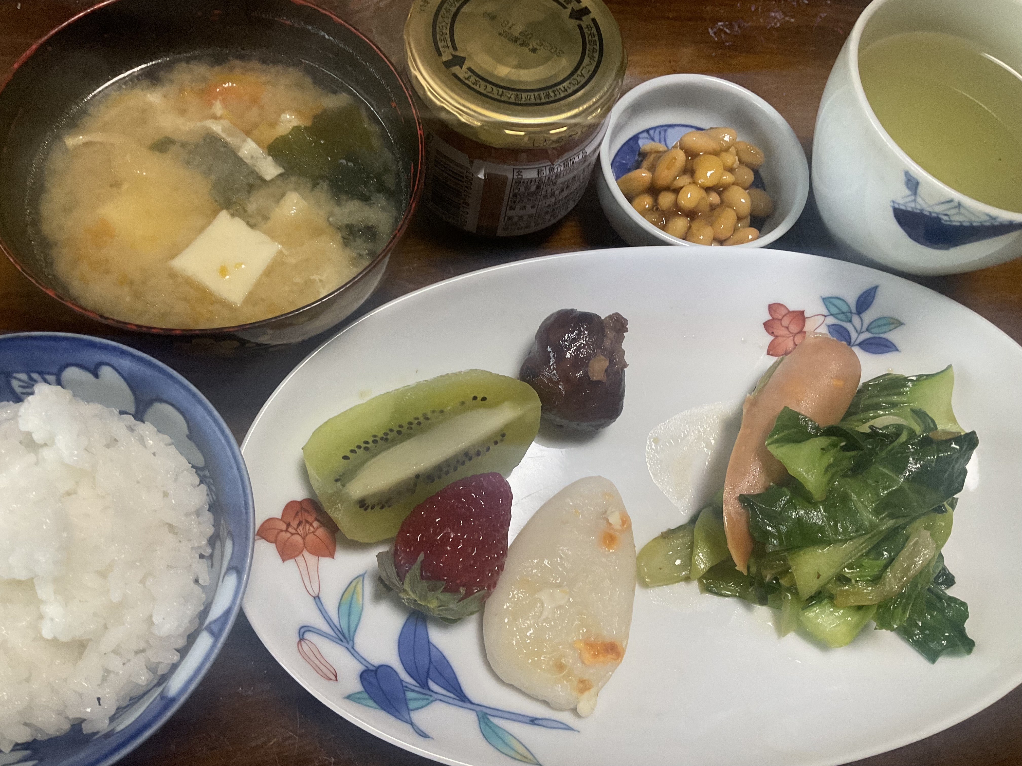 おはようございます😃日曜日は基本目が覚めません朝ごはんも適当になりがちですね〜青梗菜の炒め物 厚揚げの味噌汁 葡萄豆 チーズ入り笹かまぼこ栗の渋皮煮は手抜きしたので、失敗作ですが、まあ、まあです笹かまぼこは20%引きになっていたので購入美味しゅうございました🙆年金生活に突入してから、うちの食卓は割引シールだらけです誰かが、病気しないように、食費は削らないと言ってるのを聞いた時だけ反省しますが、すぐ忘れて、またまた半額シール買ってしまいます結論年金が安すぎるわいな
