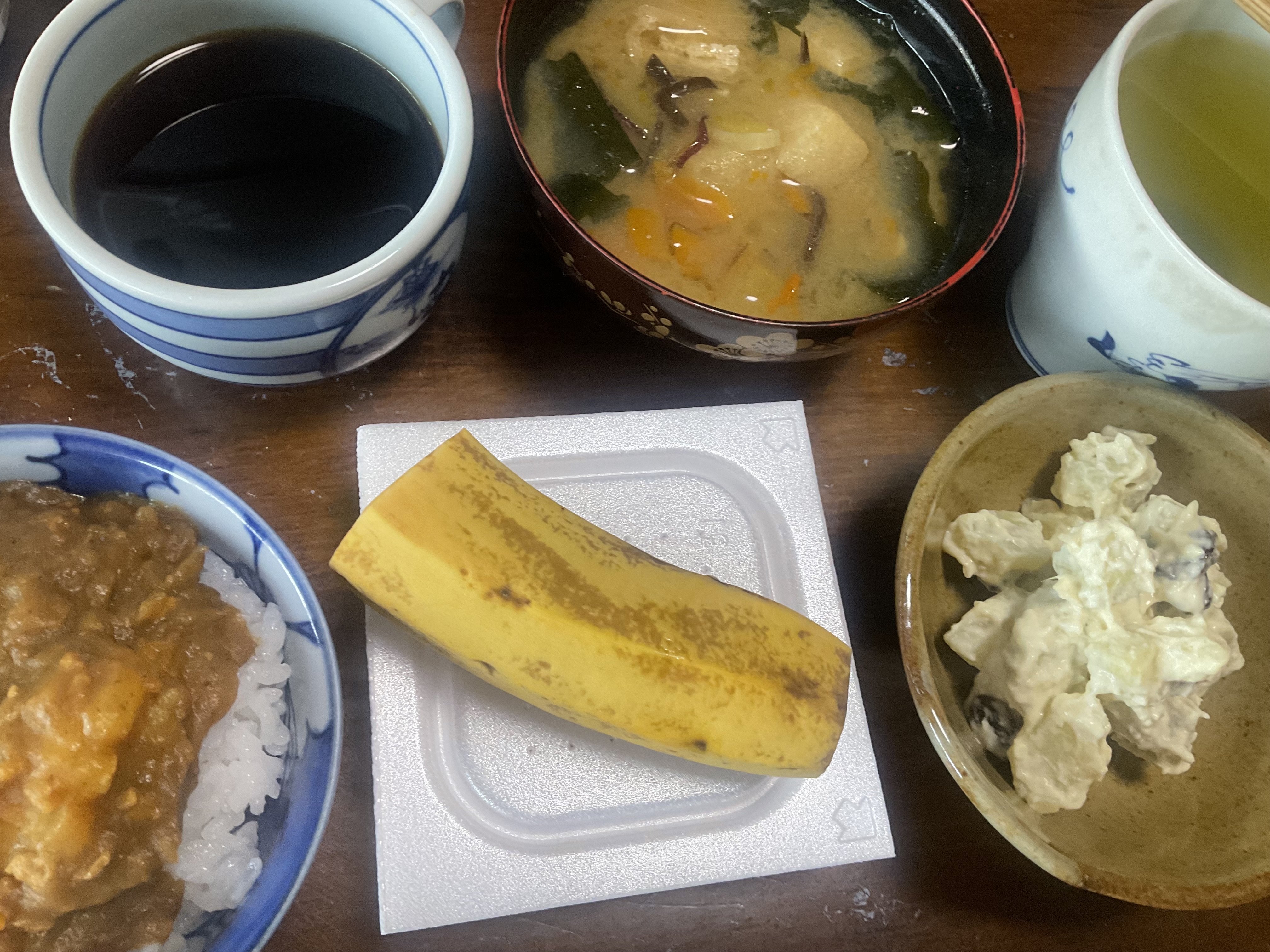 おはようございます😃もう、夜だけど…実は、まだ、食欲イマイチで😿味噌汁 サツマイモサラダ 納豆残り物カレー🍛月曜日にGさまが作ってくれたカレーが大あまりしてるんですの困っちゃうで、食べたんだけど、あんまり食欲ないんで、なかなか箸が進まず……困ったもんです食欲ないから、体重も2キロほど落ちましたもともと、冬の方が痩せやすいんですけどね痩せると皺が目立つのよねえ〜〜
