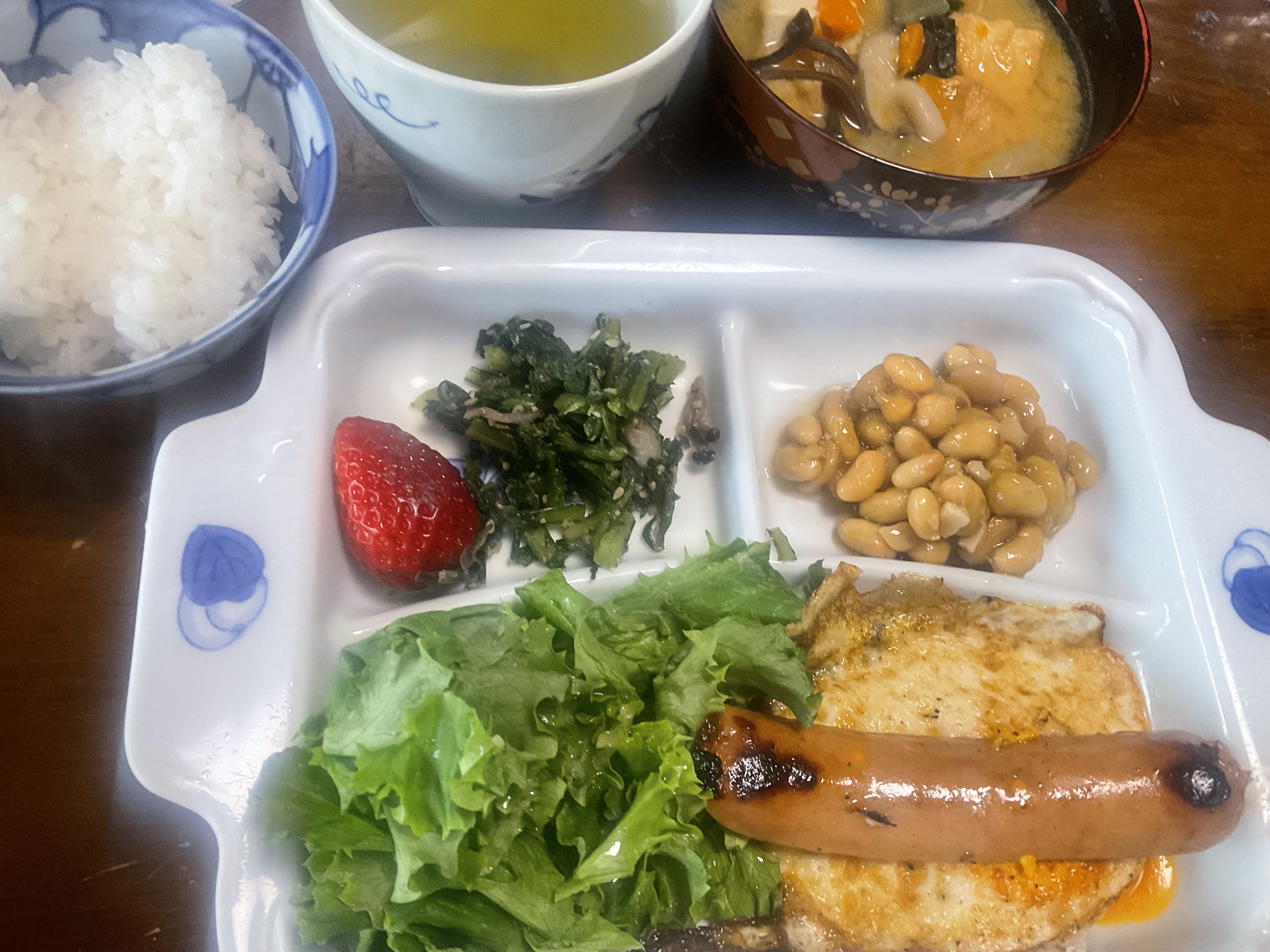 おはようございます🌞もう、夜ですが〜〜今日は朝からヒイババの病院の付き添いで、半日仕事になってしまった病院って、ほんと、長いんですよね午後は訪問看護さんがきてくれて……そうだお医者さんが、ずいぶん耳が遠くなりましたね だって私も聞こえないが、ヒイババも酷いのなんのそのような朝ごはんです目玉焼き 納豆 葡萄豆 味噌汁まめまめしい朝ごはんです🍚緑がないとも言います〜