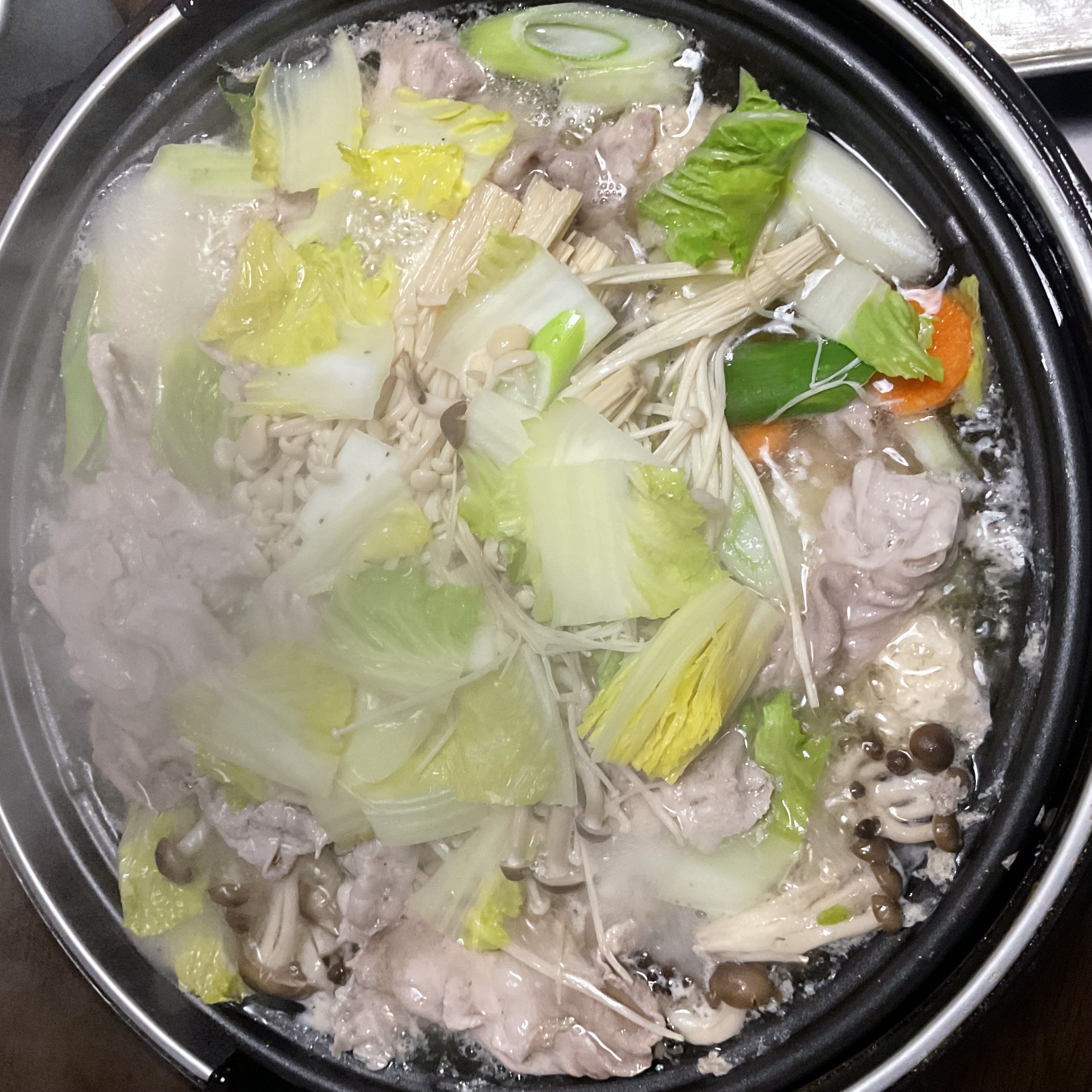 おばんです微妙に力尽きておりますやるきはあるけど、空回りしてるみたいな?今、興味あるのは刺繍ですが、目の調子がねえさて、夕飯です豆乳鍋🫕昨日鍋にしたら簡単で、つい今日も〜〜やっぱ鍋、美味しいなあ🤤特に、締めが美味しいチーズ入れて、リゾットでもう、本当に美味しいんです😋豆乳鍋は、締めが美味しい🤤ごちそうさん