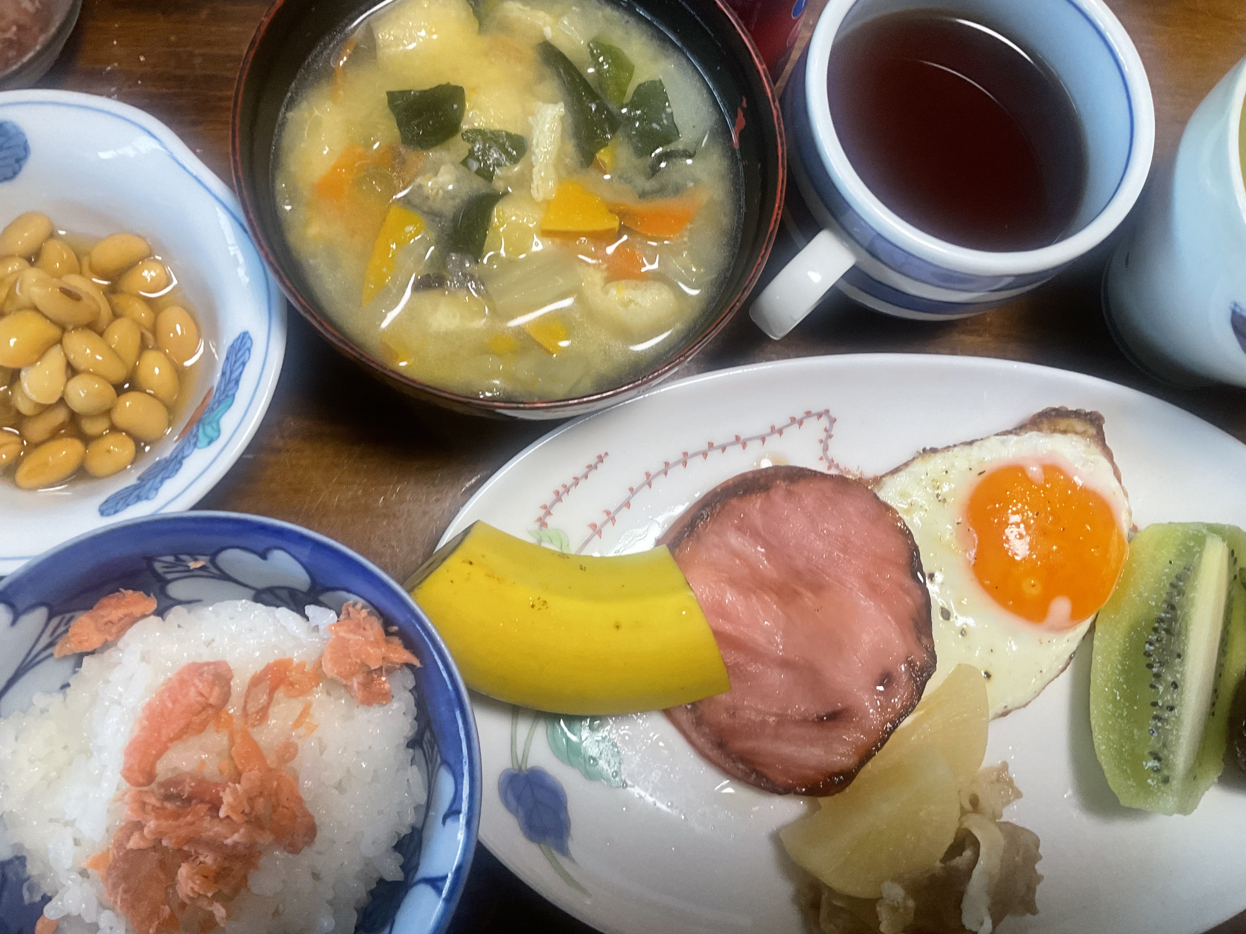 どもです土曜日で、いつにも増して目が覚めず、Gさまらが、朝ごはん作ってくれておりましたありがたや ありがたや目玉焼き🍳 味噌汁その他ごはん食べれるだけで、本当にありがたいことです感謝 感謝ごちそうさん