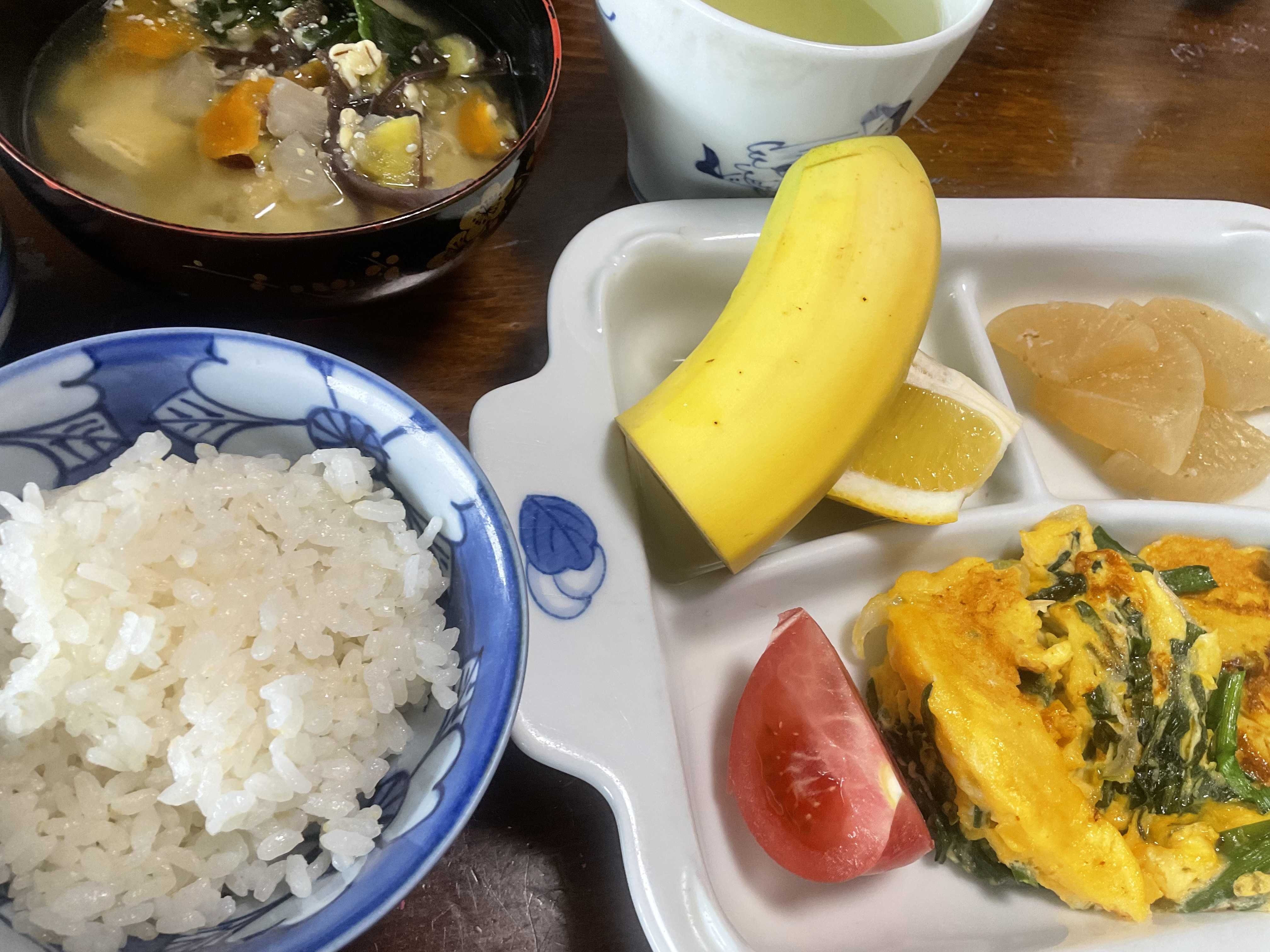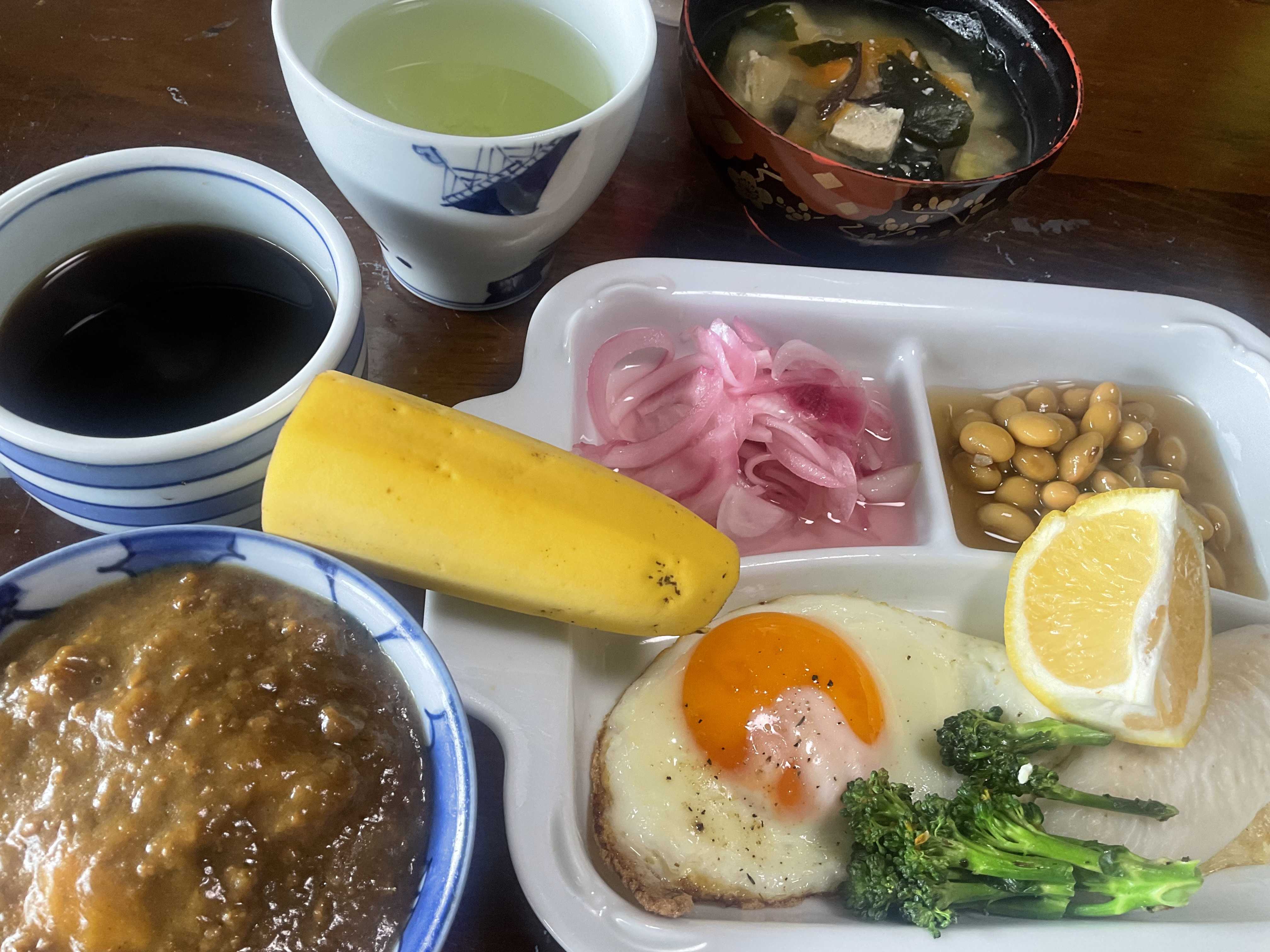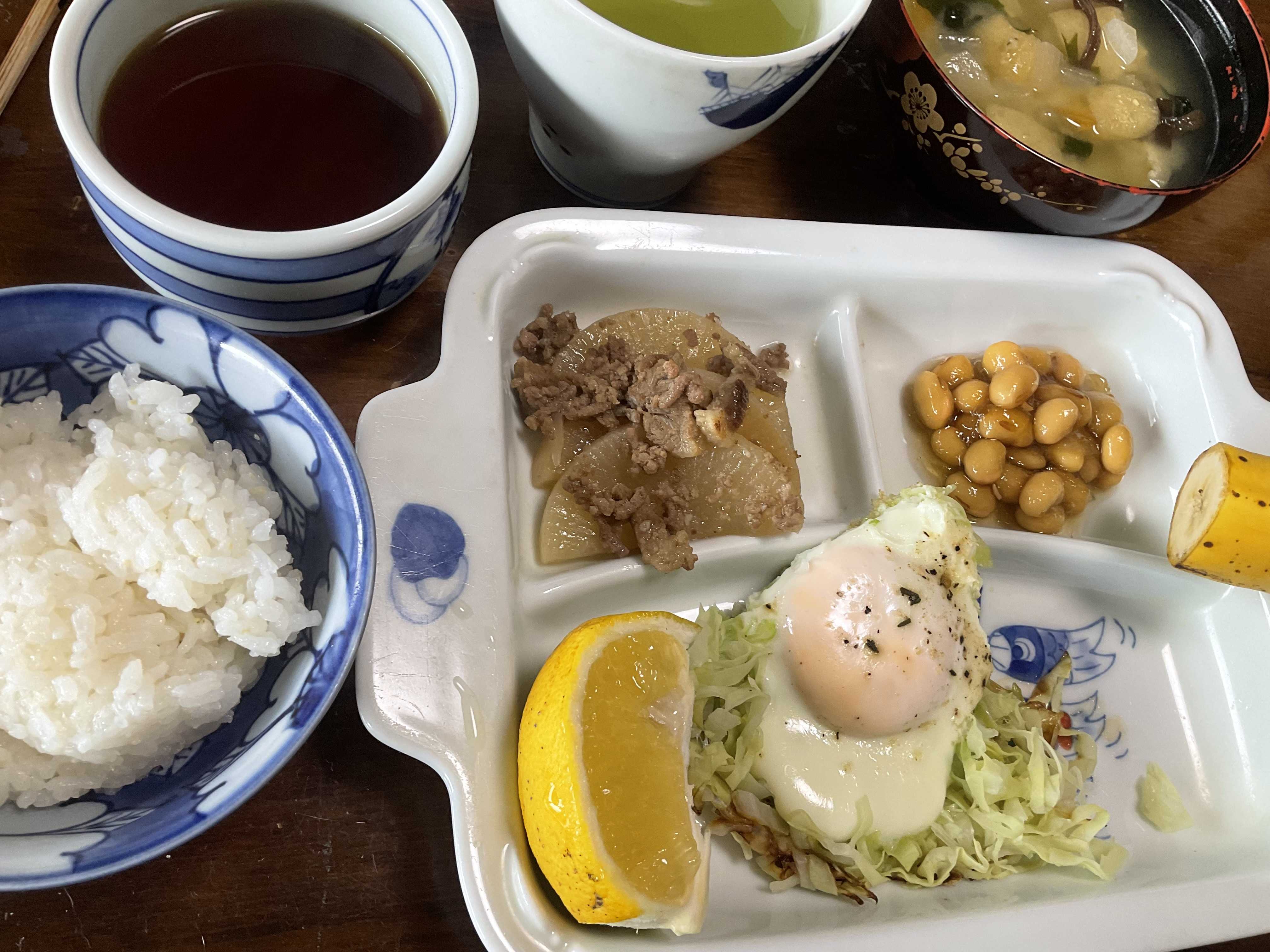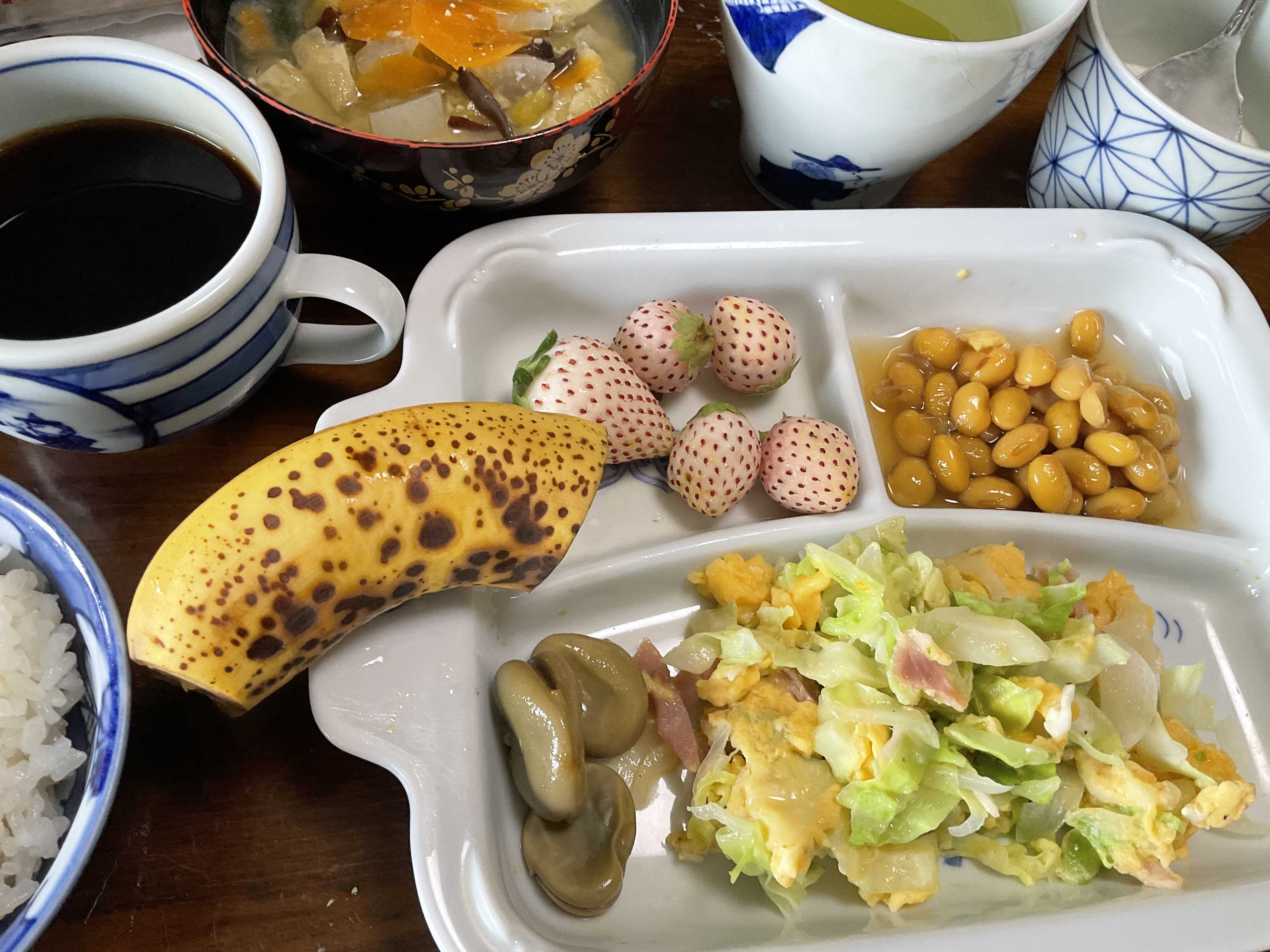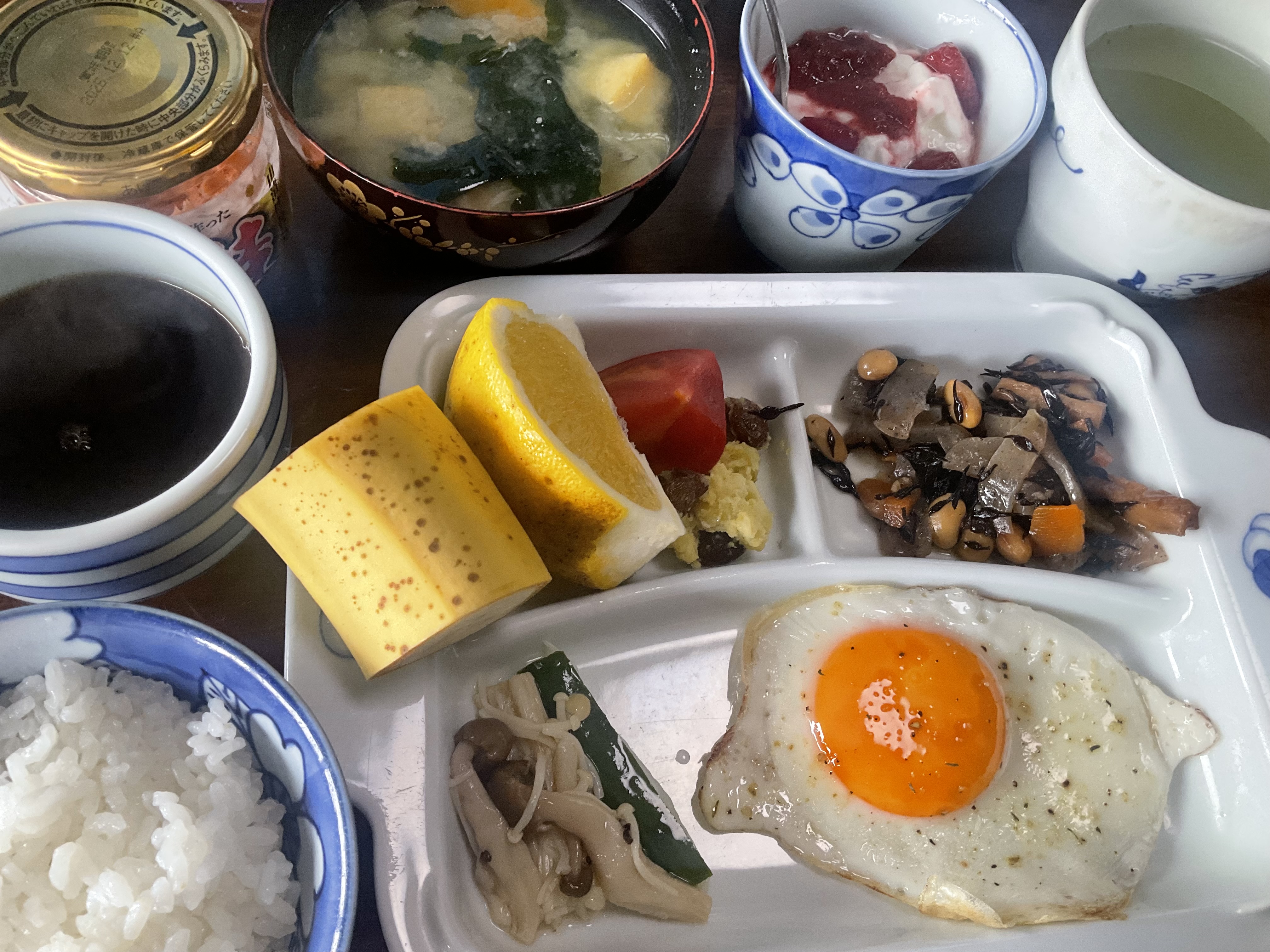おはようございます😃なんか疲れが取れなくて、昨日は8時ごろねたのに、今日も目が覚めませんでした8時に起きたので、なんと睡眠時間12時間⏰どんだけ農作業こたえてるんだ……そんなわけで、Gさまらが作ってくれた朝ごはんです☀️味噌汁 目玉焼き🍳 ぶどう豆などなど自分で作らないと美味しい😋そろそろ田植えの準備で、本当に日々疲れていますごちそうさん