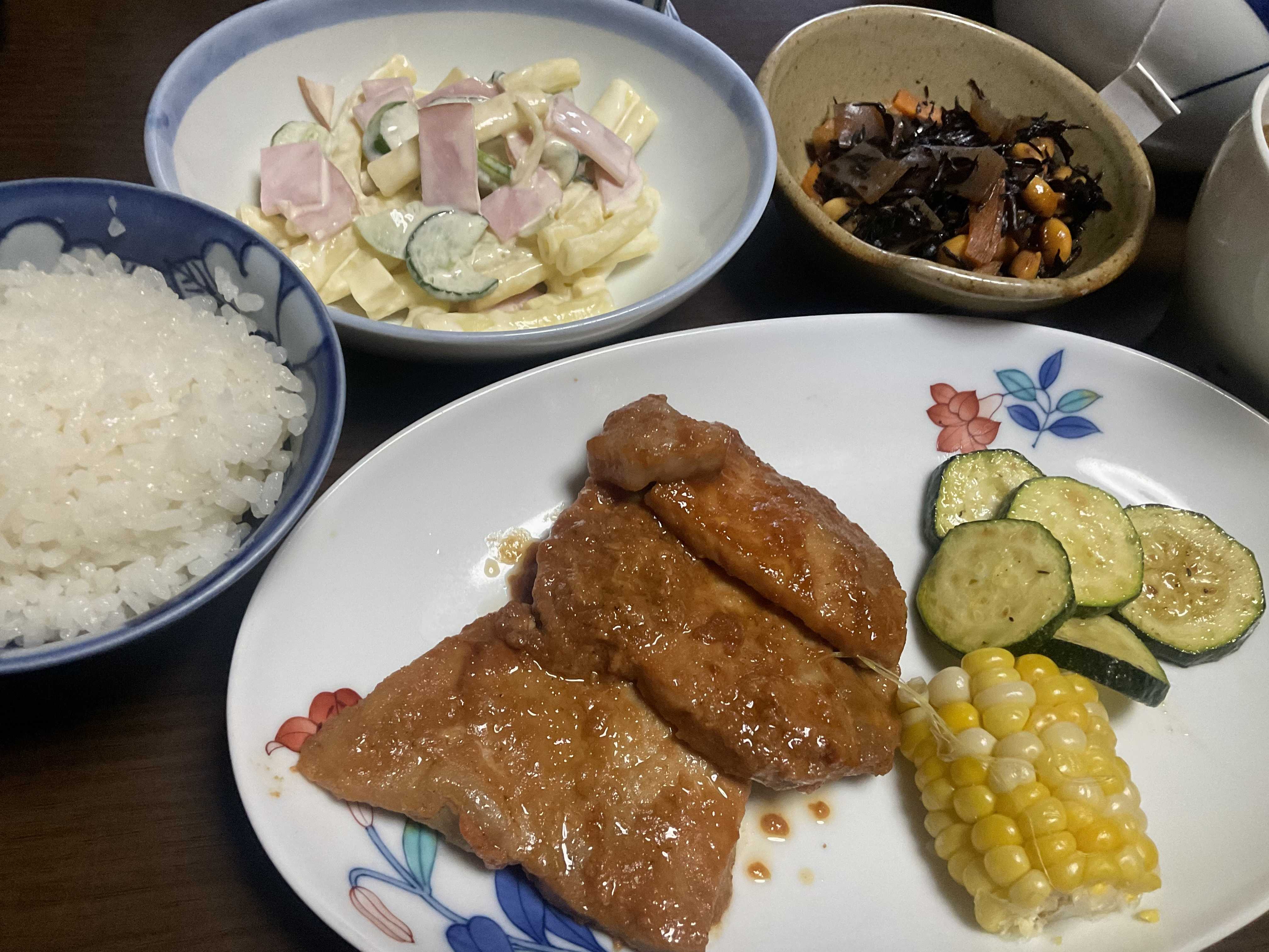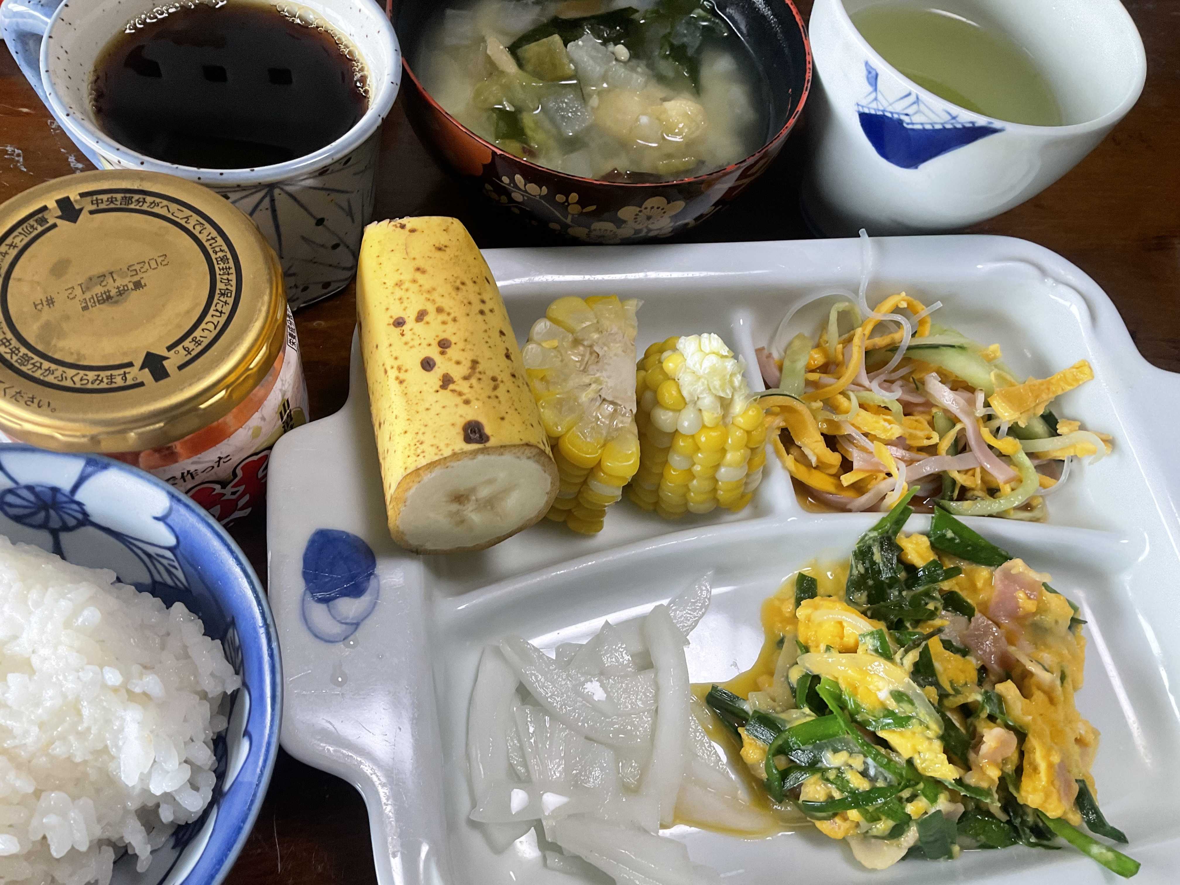 どもです今朝は私も寝坊したが、子どもも寝坊みんな、ねぼすけになっております春だから?ニラ入りオムレツが崩れてしまった味噌汁 玉ねぎのかんたん酢漬け 春雨サラダとうもろこし🌽は子どもがもらってきましたすんごい甘いです〜〜お金はかかってないけど、じゅうぶん美味しい😋ごちそうさん