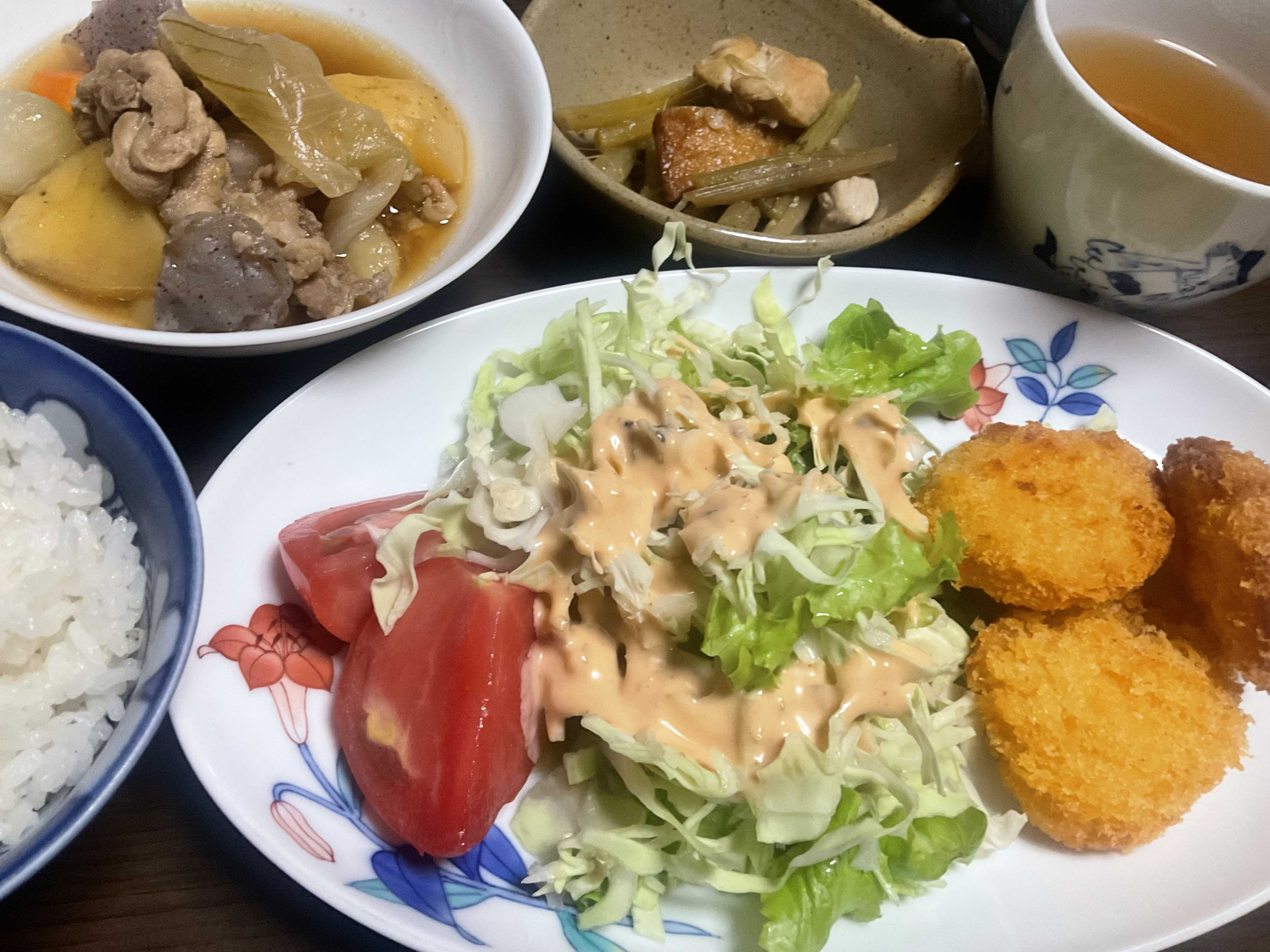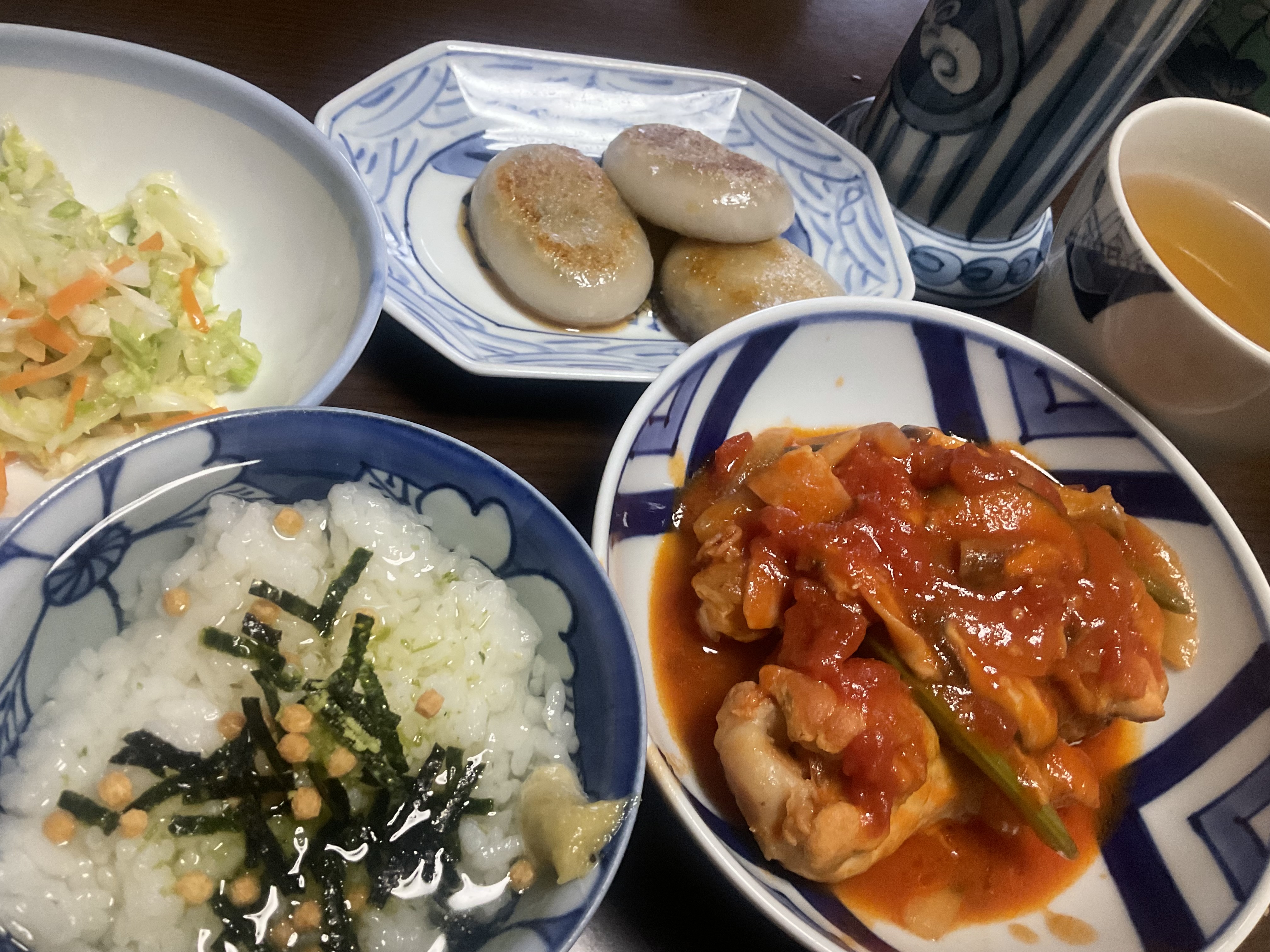 おばんです日々、今日の献立に悩んでおりますあと、物価高にもねダブルパンチってやつですやっぱ、チキンをメインにすえると、かなり安上がりですね〜〜チキンのトマト煮込み ニラ饅頭 コールスローキャベツと玉ねぎは自家製 ニラ饅頭は割引シールかなり安上がりで1人200円ほどですまた冷やご飯が大量なので、お茶漬けです🍵さて、明日は草取りですがんばらんば♫ と自分を鼓舞する