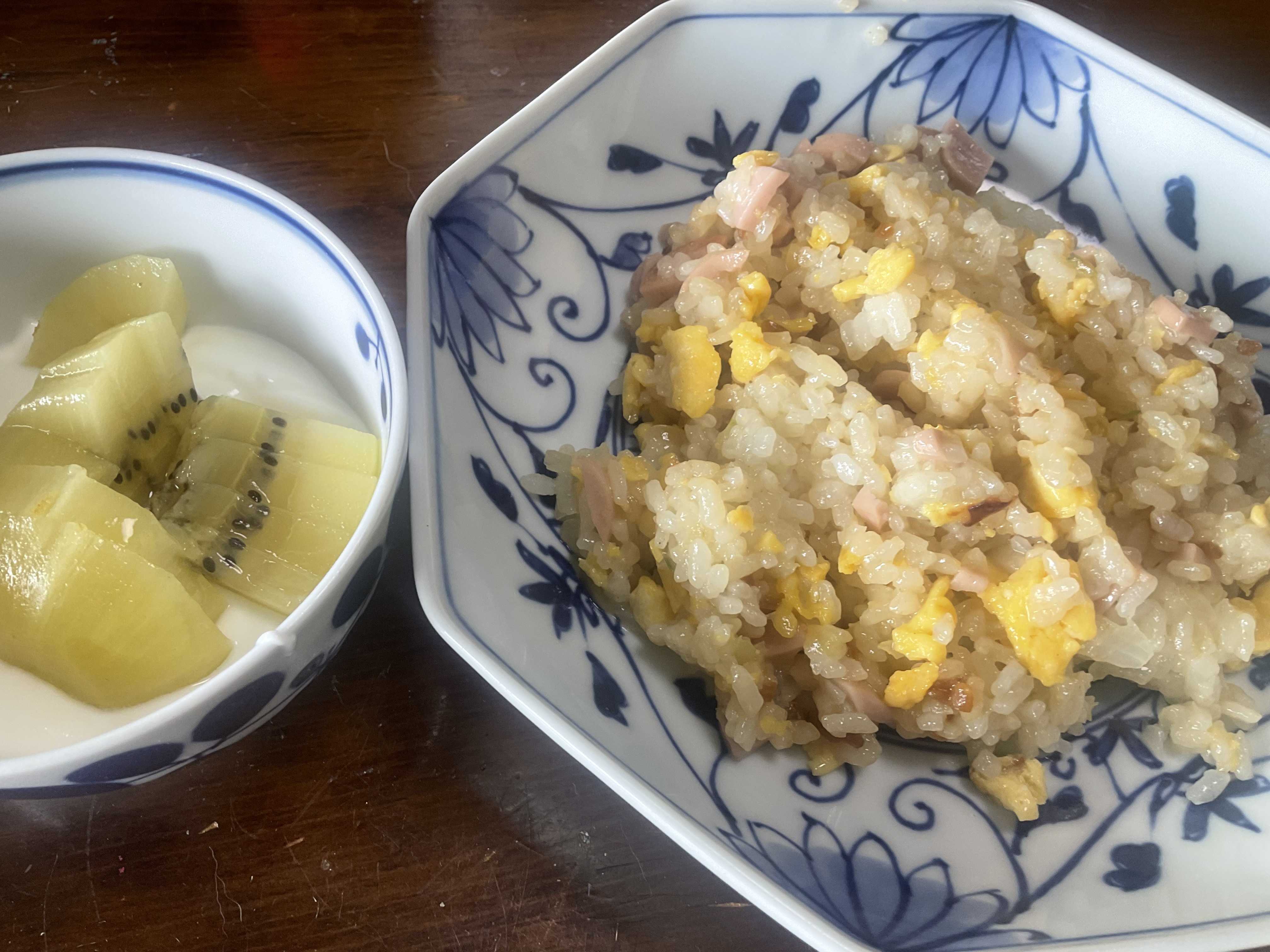 どもです今日のランチはGさまの当番ですでも、Gさますっかり忘れていたようで、昼過ぎてから、おもむろにチャーハン作り始めました♪なんでもいいのよ考えてくれたらさチャーハン 残り物の炒り卯の花もうね、食べれるだけで、OK🙆♀️味は二の次で。てか、どんどん美味しくなっているような⁉️ありがたいことですわごちそうさん