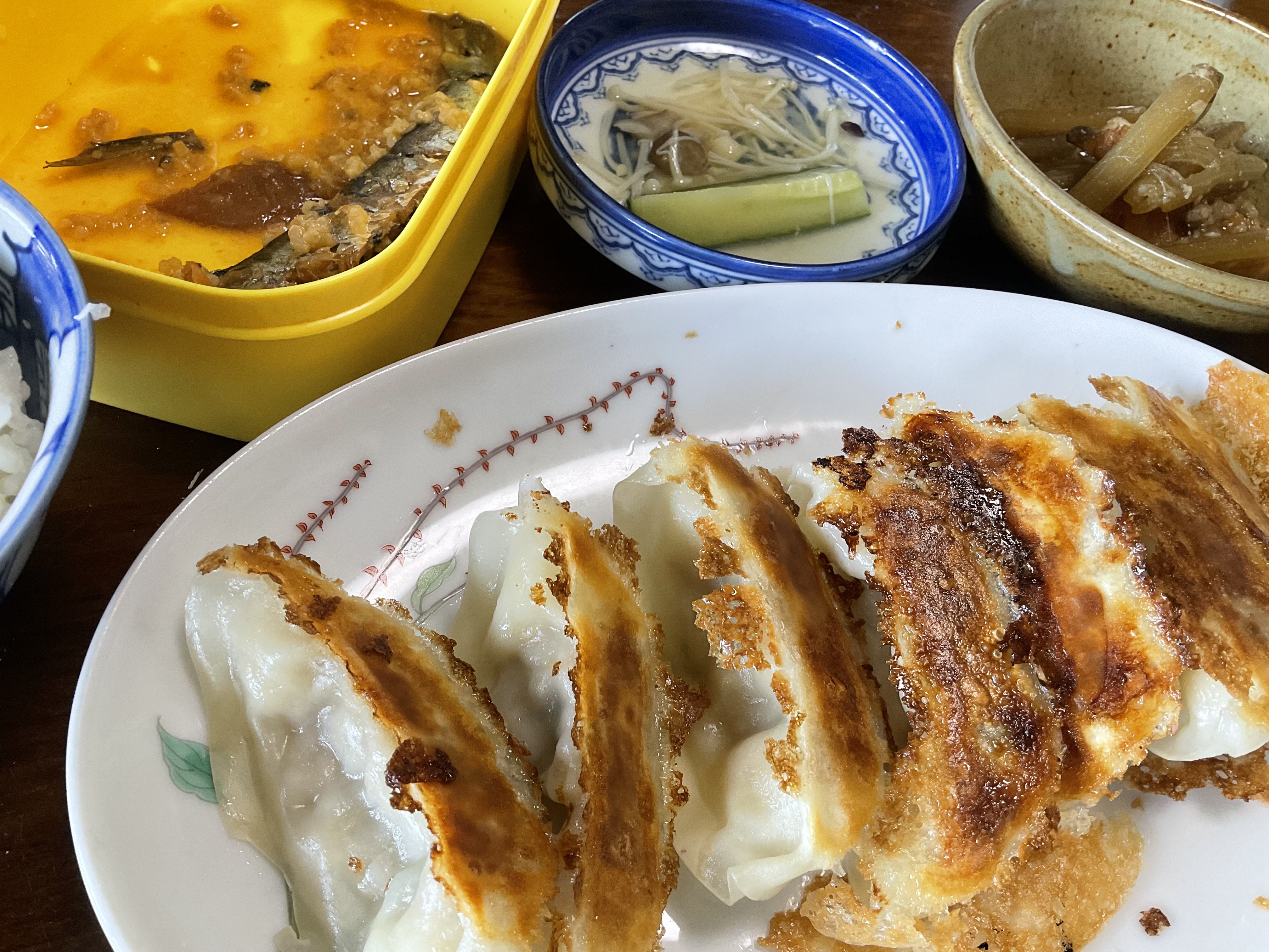 どもです水曜日はGさまのランチ当番ですお弁当屋さんがお休みなので、冷凍庫の王将餃子を焼くことに餃子も、その他も全て残り物です冷蔵庫の片付けしよう…てなもんですイワシなんて、いつのものかもよく覚えていないという💦どんどん食べないと、いたんじゃいますからな結構ケチっているつもりでも、食品ロス、多いですごちそうさん