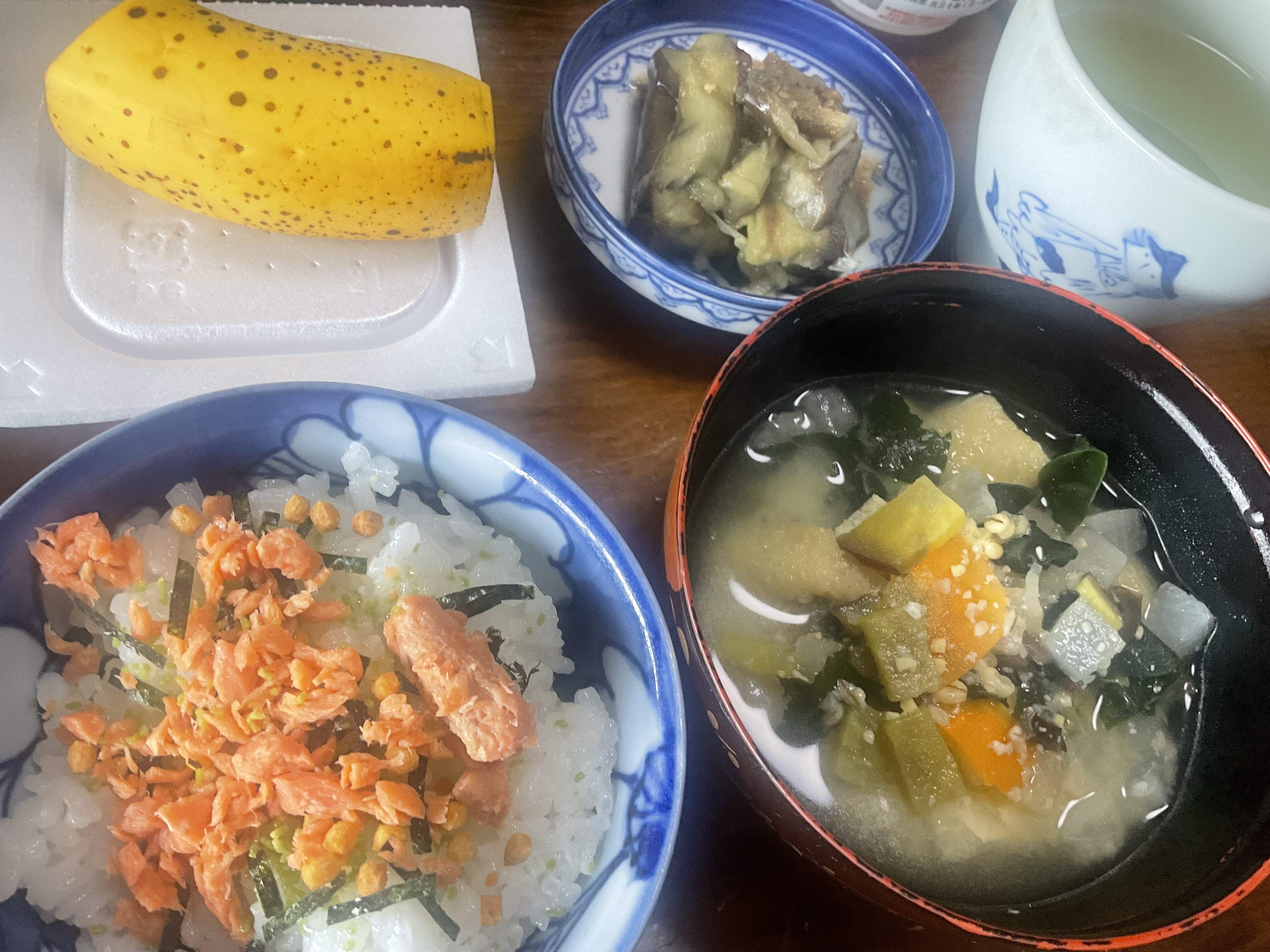 どもです今日は早朝から、地域の公民館の草取りに行ってきましたどっちかというと、家の草の方がすごいのですが、まあ、そこは致し方なし頑張って汗流してきましたよ実は今朝もお茶漬け 冷やご飯余まくりなんですのあとは、味噌汁 納豆 茄子🍆🍆安かったんで大量に買ってきたのよねいつものごとく寝坊したけど、早朝の草取りにはなんとか間に合いましてんめでたしめでたし