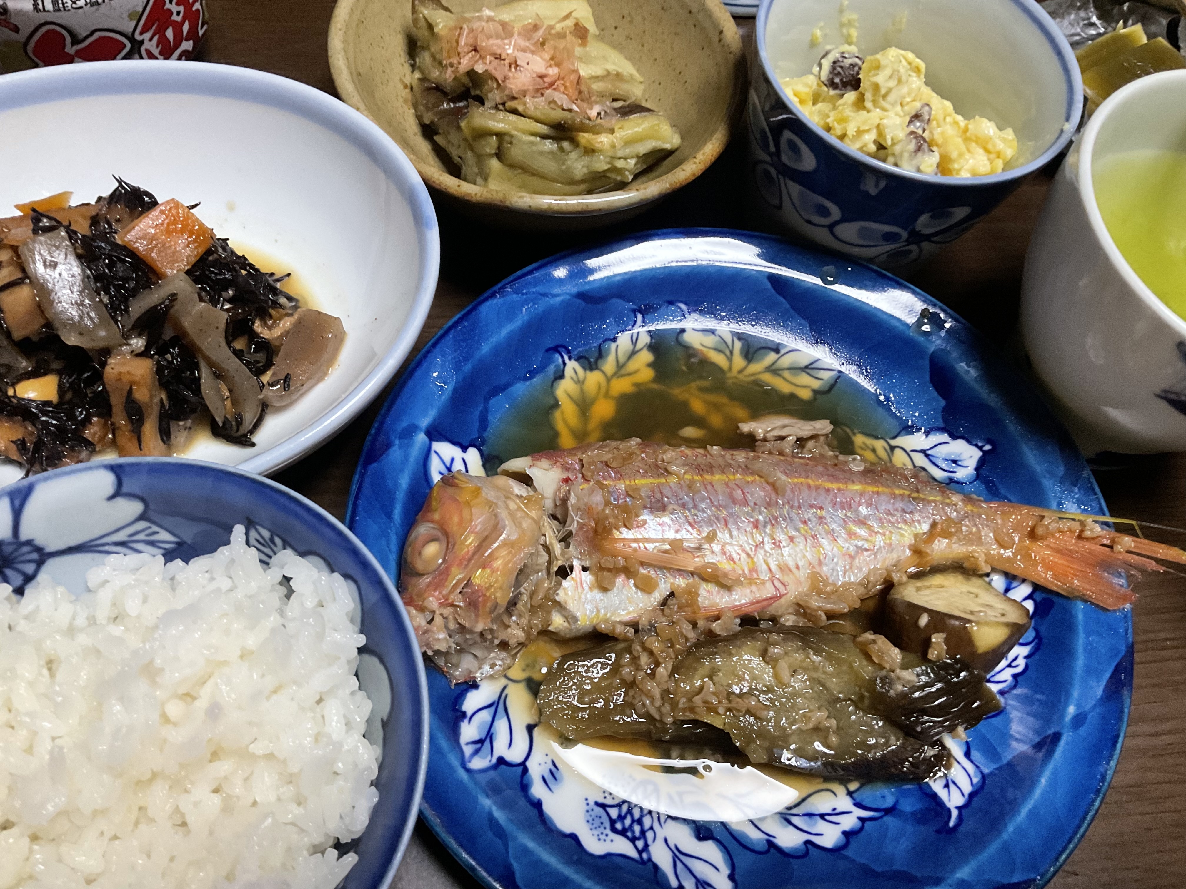 どもですこのごろ、夕飯を書く前に寝てしまいます眠くなるのは、良いこと⁉️ なのだろうなイトヨリをしょうゆ麹で煮たら、なんか見た目すごいな頭ちぎれてるしあとは、サツマイモサラダ ヒジキ豆 茄子の胡麻和え昨夜は、ほぼ老人だったので、和な夕飯となりました😉