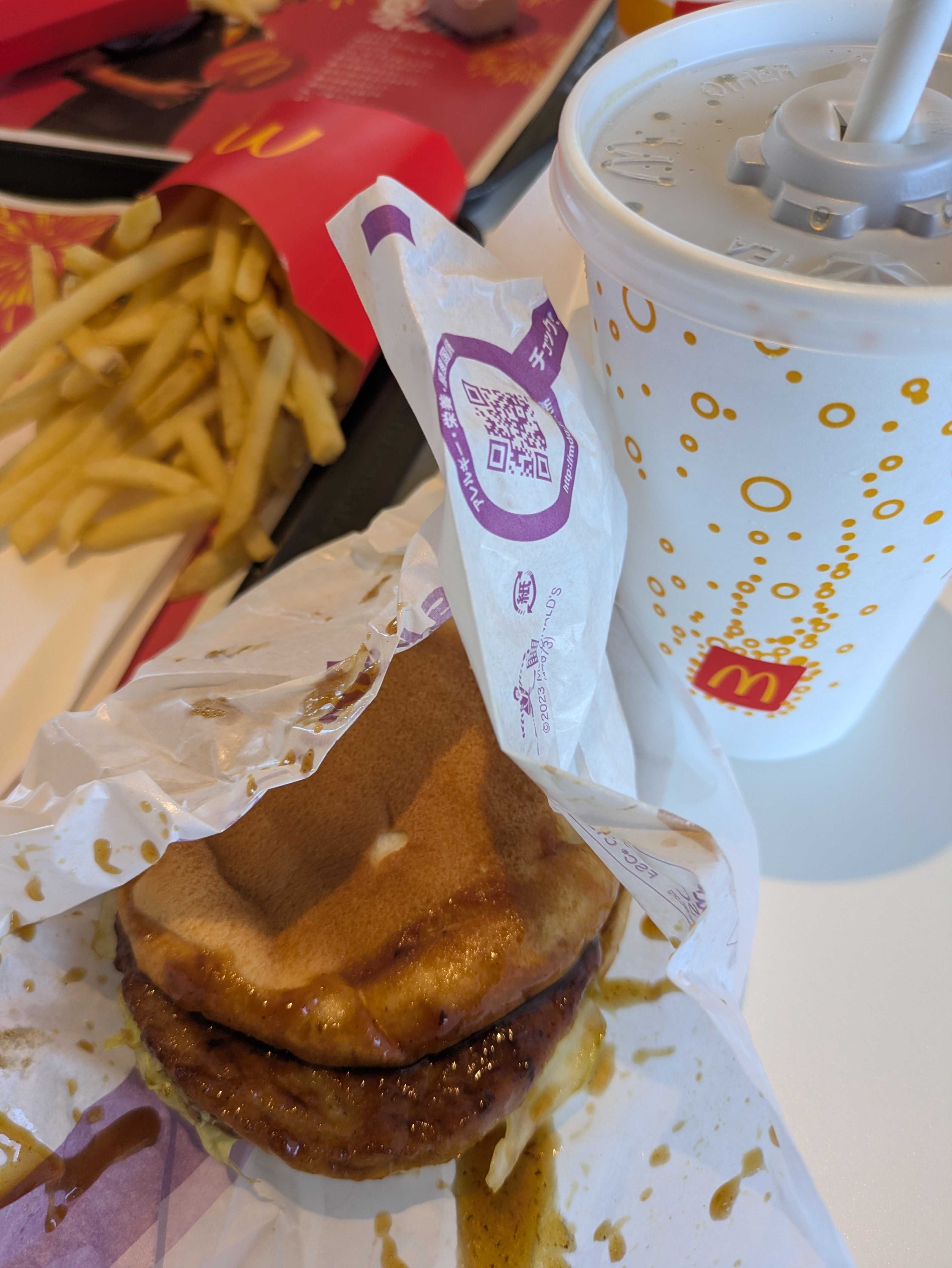 どもです孫ちんと一緒に食事にいくと、必ずマックみたいななんか、他の店に行きたいと思うけどもさ、食べてくれないと困るしもはや諦めムードデスまずいとは言わないけどもさ、安いのはそれなりだよねでも、私は基本ドケチなのて、安いのしか食べない600円の照り焼きハンバーガーセット🍔次からは、ハンバーガーのみ買って、テイクアウトにしようかなあと思わぬでもない