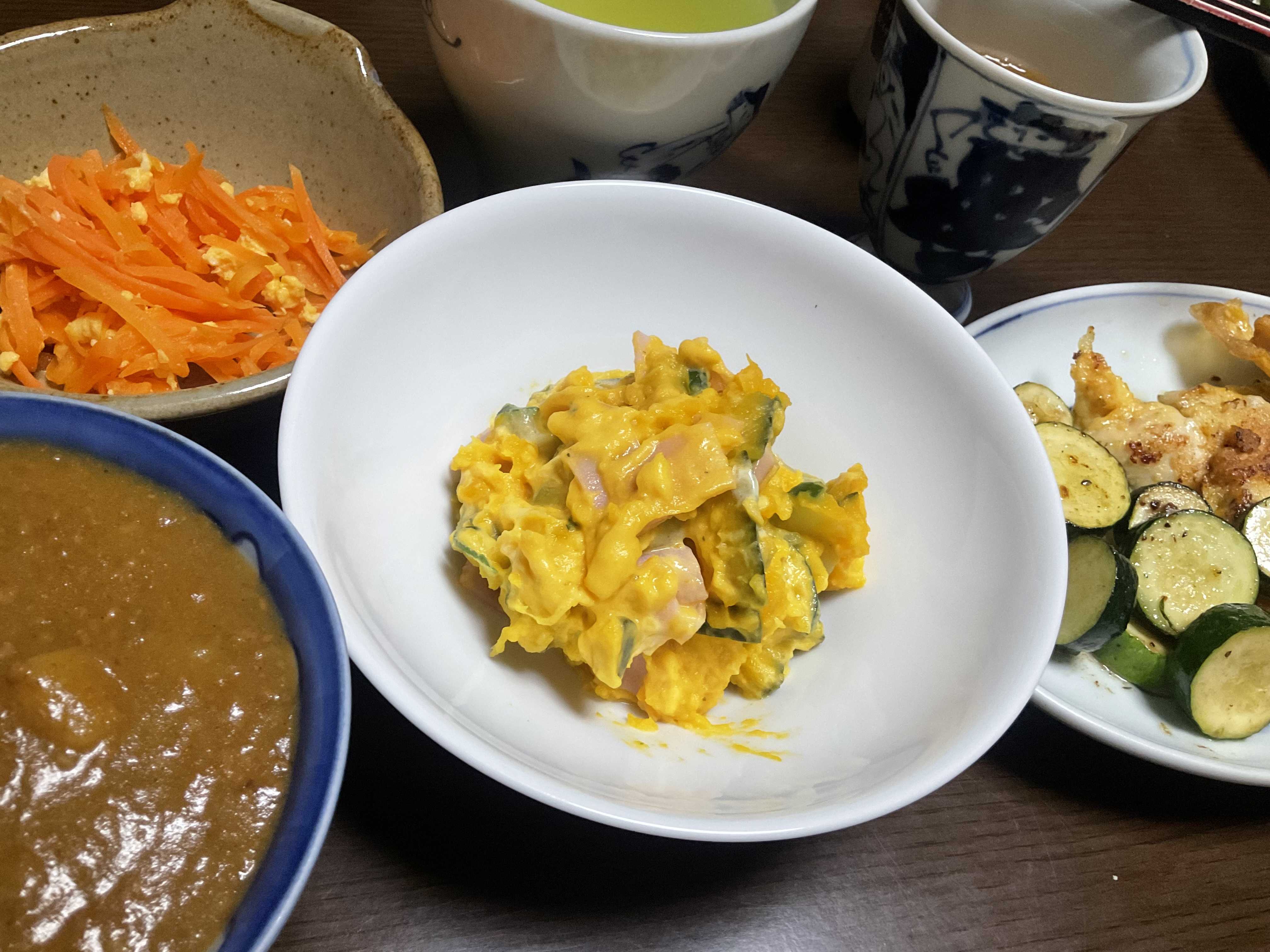 どもです今日は久しぶりにもらいもののビールを飲んだのですが、何しろアルコールに弱いので、子どもが久しぶりにビール飲んでぶっ倒れてしまいましたおそらく缶ビール1本分も飲んでないですああ、弱いのうそのような夕飯です鶏胸肉のピカタ カボチャのサラダ にんじんしりしりー昨日の残りのカレーもねズッキーニは自家製ですキュウリは1本19円こんなに安いと買った方が作るより安い??旬の野菜を食べてひたすら節約ですあ、カレーのお肉は挽肉です〜〜😁