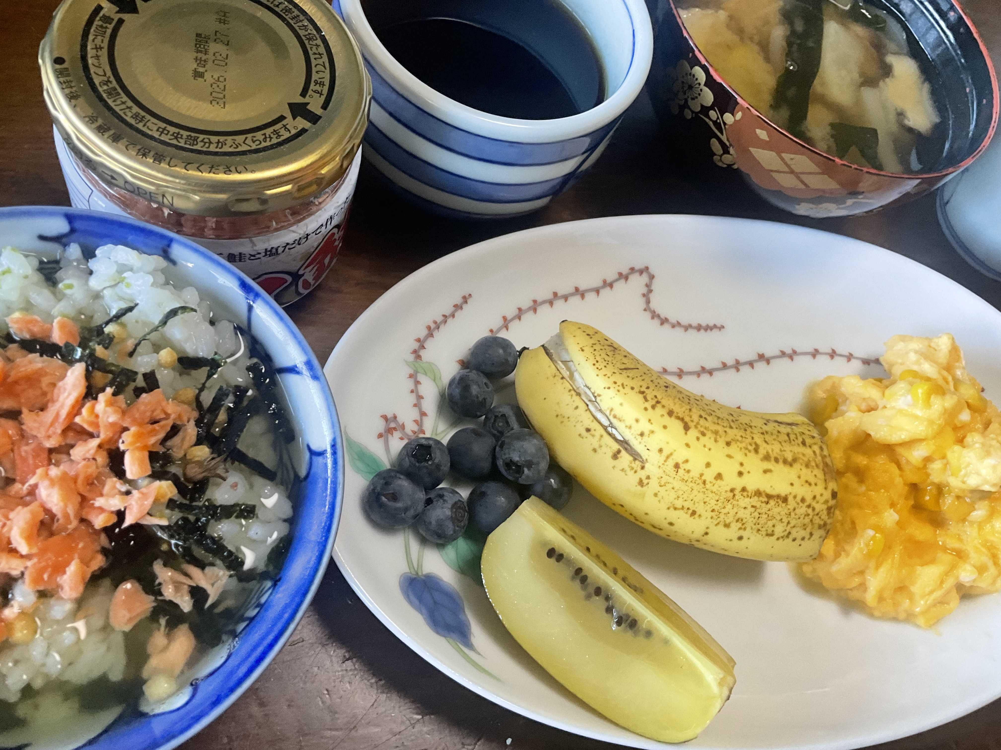 おはようございます😃小学生の孫ちんは、ジジババのいうことは、全く聞きませんああ、やんなりますでも、相手をせぬわけにもいかず、遊びには最低限つきあうけど、宿題見るのは親の勤めということにしようそうでないと、やってらんないコーン入りスクランブルエッグ 味噌汁 酢の物 フルーツこのごろ、冷やご飯が大量なので、ちょっと反省しつつお茶漬けに孫ちんらがソーメンばっかり食べてるからなあ〜〜ごちそうさん