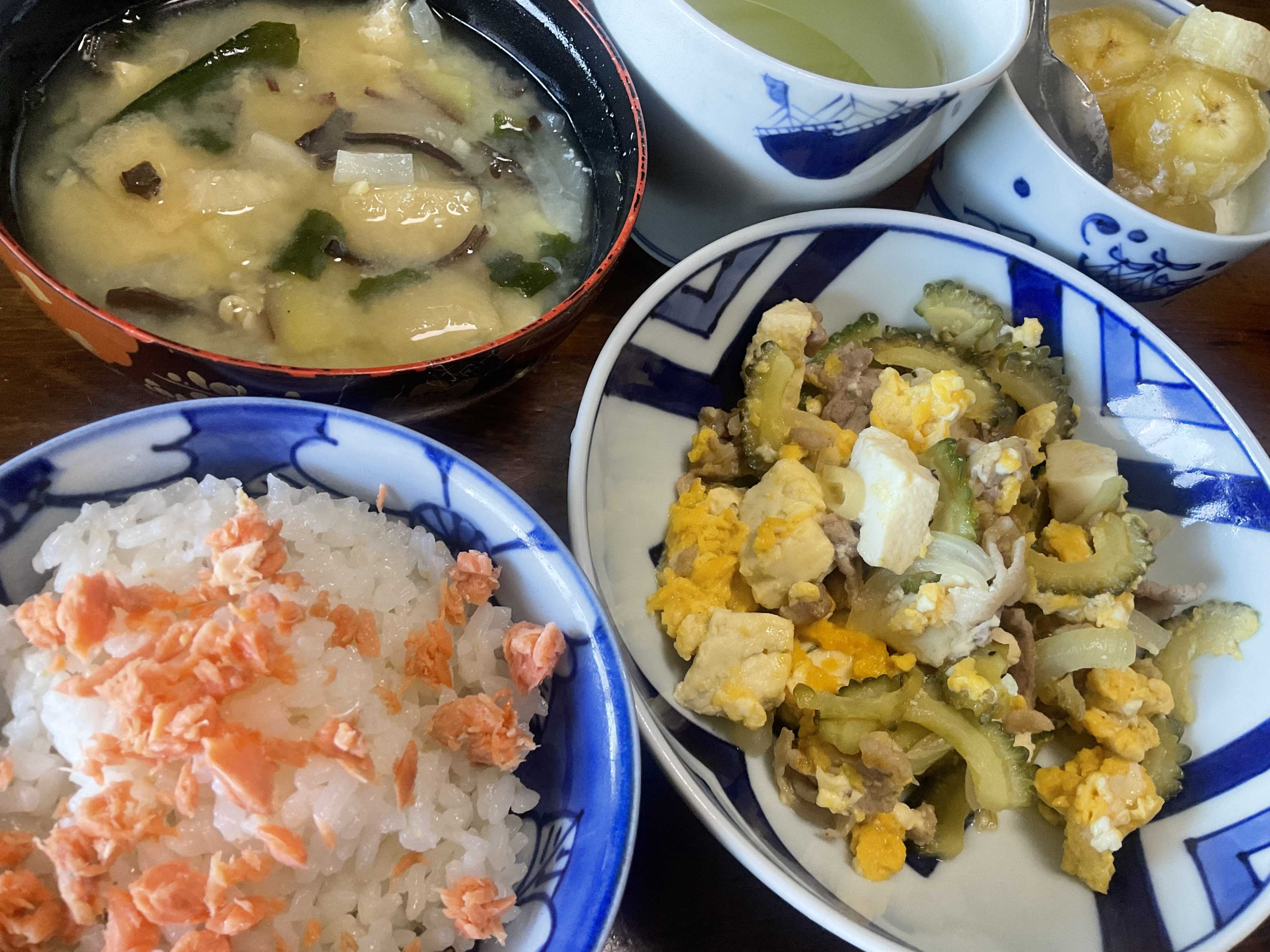 おはようございますこのところ、お昼にとと姉ちゃんとあんぱんを続けて見ているのですが、高畑充希さんが、菅田将暉さんに見えてしょうがない私だけでしょうか??そのような朝ごはんですゴーヤチャンプルー 味噌汁 ヨーグルト3本100円のバナナを買ってきたら、大失敗すぐに熟れてしまって、やわやわじゃん色も変な色ゴーヤは2本で88円でゲットです味噌汁の具材も玉ねぎ中心で👍ごちそうさん