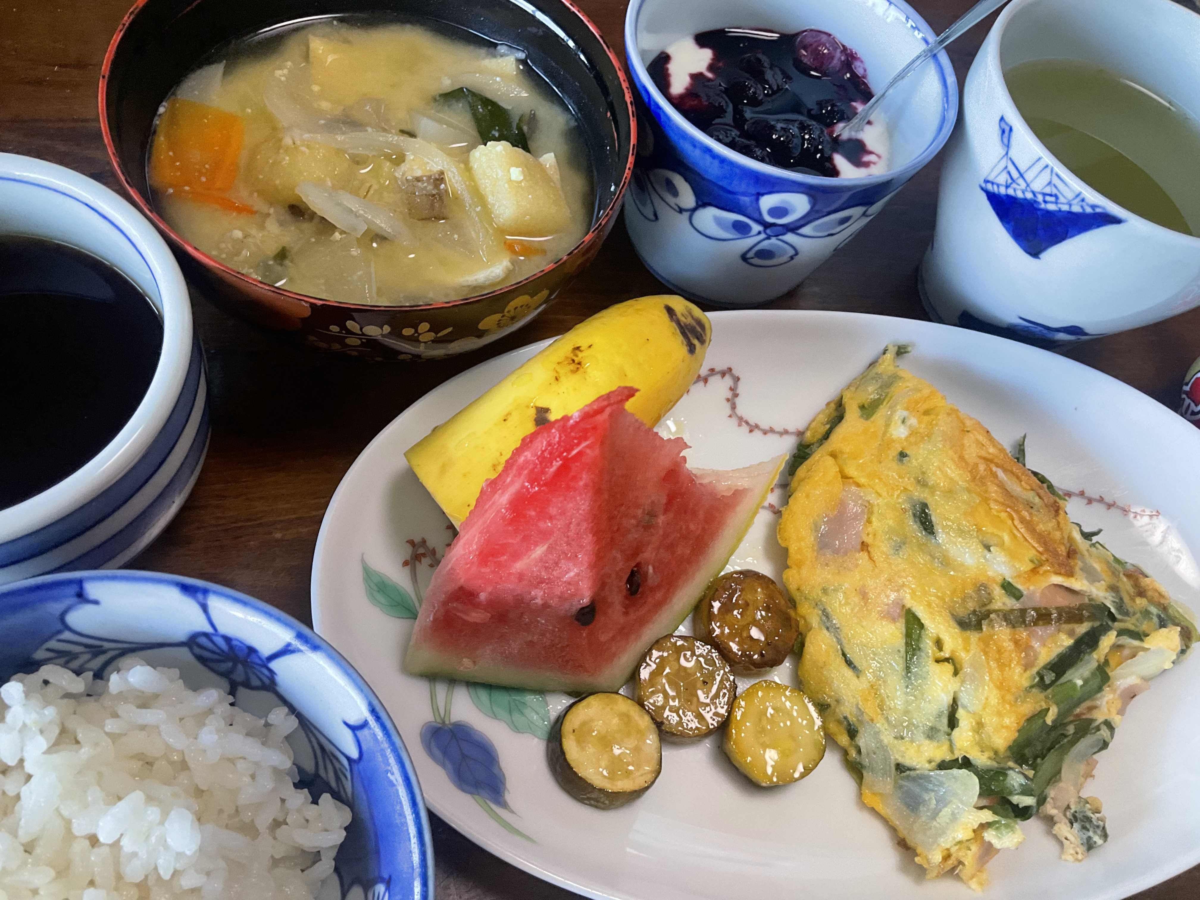 どもです今日は早起きして、超久しぶりのお仕事に行って来ました♪お仕事全部辞めるつもりですが、まだ少し🤏残っておりまして…断るのが下手なもので、まんだ微妙に残っているのですそのような朝ごはん🍚オムレツ ヨーグルト 味噌汁ご飯は孫ちんの食べ残しです子どもらは食べないので、私が食べるしかない捨ててもいいのだけど、身についた貧乏性はなかなか治らない私が子供の頃は、日本の田舎はほんと貧しかったような……今はいろいろ食べれて本当幸せ😀ごちそうさん