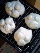 今日は本当はこぐま会の問題集を買いに出かけるはずだった。でも、朝からむかつくことがあり(もうひとつの日記を読んでね!)あれからずーっと家に。みんな思い思いのことをして過ごしている。買いに行くには、車で20分、電車で30分かかる。この時間、すごく長く感じそうだった。それに、イライラしてる時に買い物に行くと、思いっきり買っちゃいそうで怖かった(と、いっても、財布にお金が入ってないんだけどね。)今日はかろうじて、絵本の読み聞かせ。きらは、小学校受験問題集、成長する思考力をやった。この、小学校受験問題集・・・24ページしかないのね・・・。昨日気がつきました。高っ!あっという間に終わりそうだ。成長する思考力・・・学校で習う“こくご”とか何という?それはいくつある?なんて問題があったときはやるのが早すぎるかな?と思ったけど、結構スラスラとやっている。今日第4回エリアが終わりました。子供達は、体力を持て余していて、鬼ごっこやらかくれんぼやら・・・狭い家の中で大騒ぎ。どうにか静かにして欲しい(笑)と思って、豚まんつくりをした。 見て、この不細工な豚たち(笑)味?味はね~、この不細工な顔と比例するかも。でも面白かったよ。